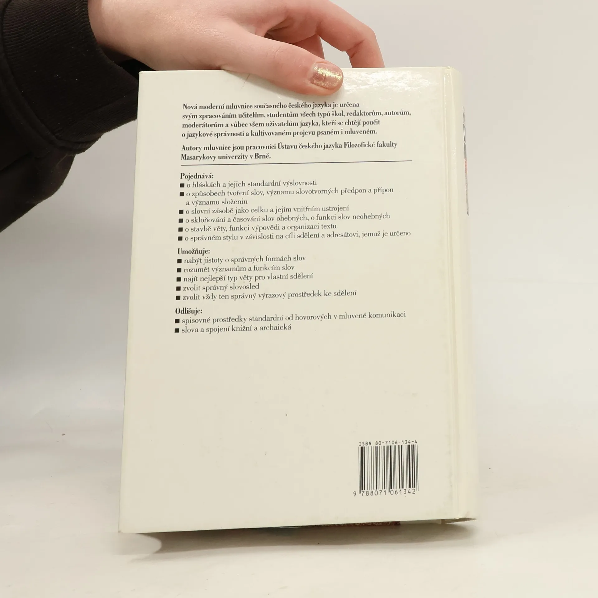 Nová moderní mluvnice současného českého jazyka je určena svým zpracováním učitelům, studentům všech typů škol, redaktorům, autorům, moderátorům a vůbec všem uživatelům jazyka, kteří se chtějí poučit o jazykové správnosti a kultivovaném projevu psaném i mluveném. Vydání druhé,opravené.
