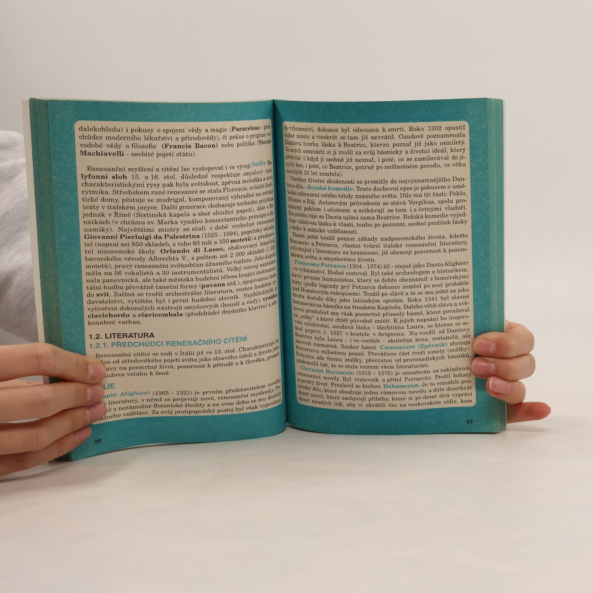 Učebnice pro 1. ročník středních škol. Na obálce a vnitřním titulu jsou použiti kresby Karla Benetky. Poučení o literatuře (naší i světové) je zasazeno do mnohem širšího rámce, než tomu bývá v ostatních učebnicích dějin literatury. Literatura se zde dostává nejen do vztahu k dalším oblastem umění a kultury, ale také do vztahu ke společenskému, politickému i hospodářskému životu lidí určitého období.