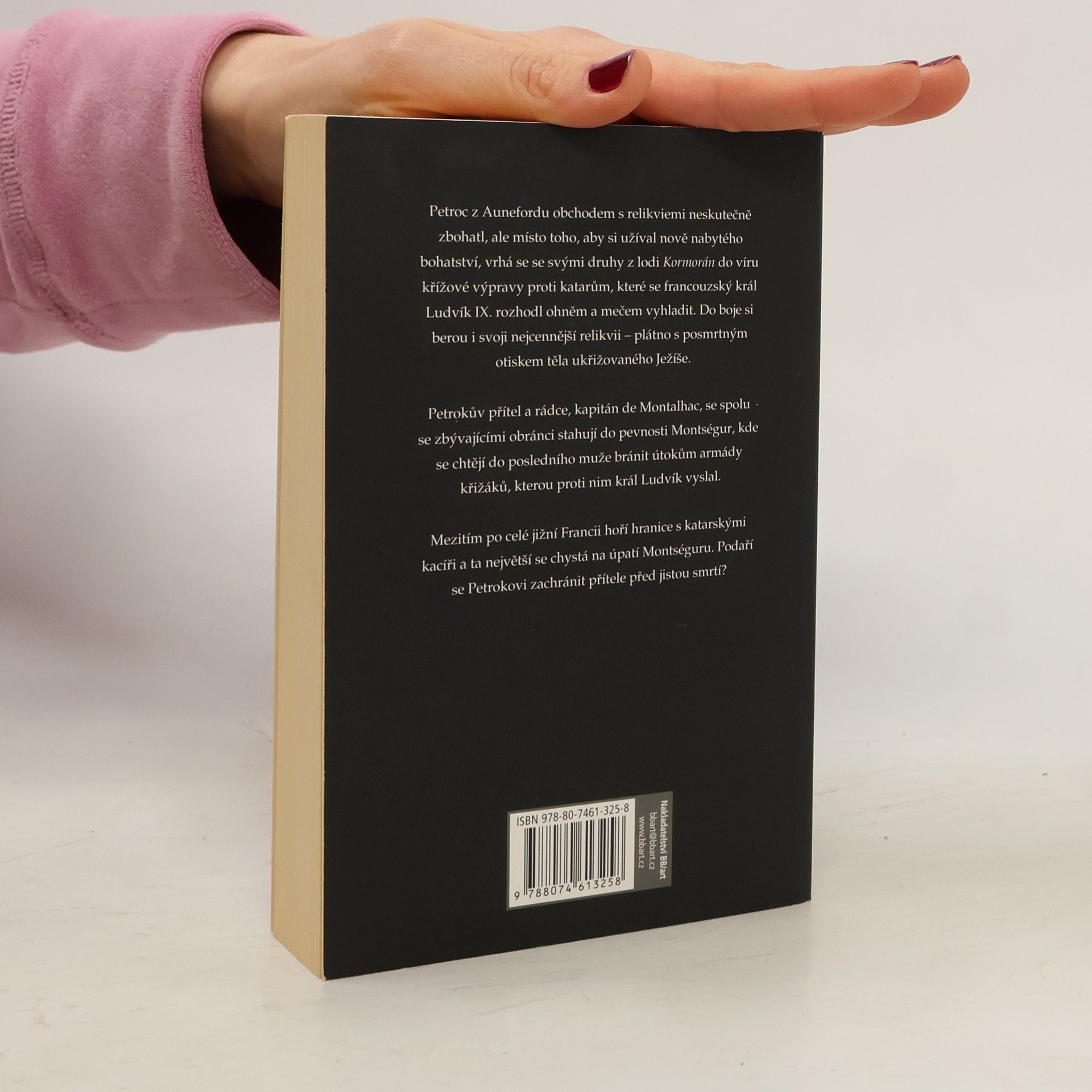 Třetí pokračování série s Petrokem z Aunefordu, které se odehrává ve 13. století. Petroc obchodem s relikviemi neskutečně zbohatl, ale místo toho, aby si užíval nově nabytého bohatství, vrhá se se svými druhy z lodi Kormorán do víru křížové výpravy proti katarům, které se francouzský král Ludvík IX. rozhodl ohněm a mečem vyhladit. Do boje si berou i svoji nejcennější relikvii – plátno s posmrtným otiskem těla ukřižovaného Ježíše. Petrokův přítel a rádce, kapitán de Montalhac, se spolu se zbývajícími obránci stahují do pevnosti Montségur, kde se chtějí do posledního muže bránit útokům armády křižáků, kterou proti nim král Ludvík vyslal. Mezitím po celé jižní Francii hoří hranice s katarskými kacíři a ta největší se chystá na úpatí Montséguru. Podaří se Petrokovi zachránit přítele před jistou smrtí?