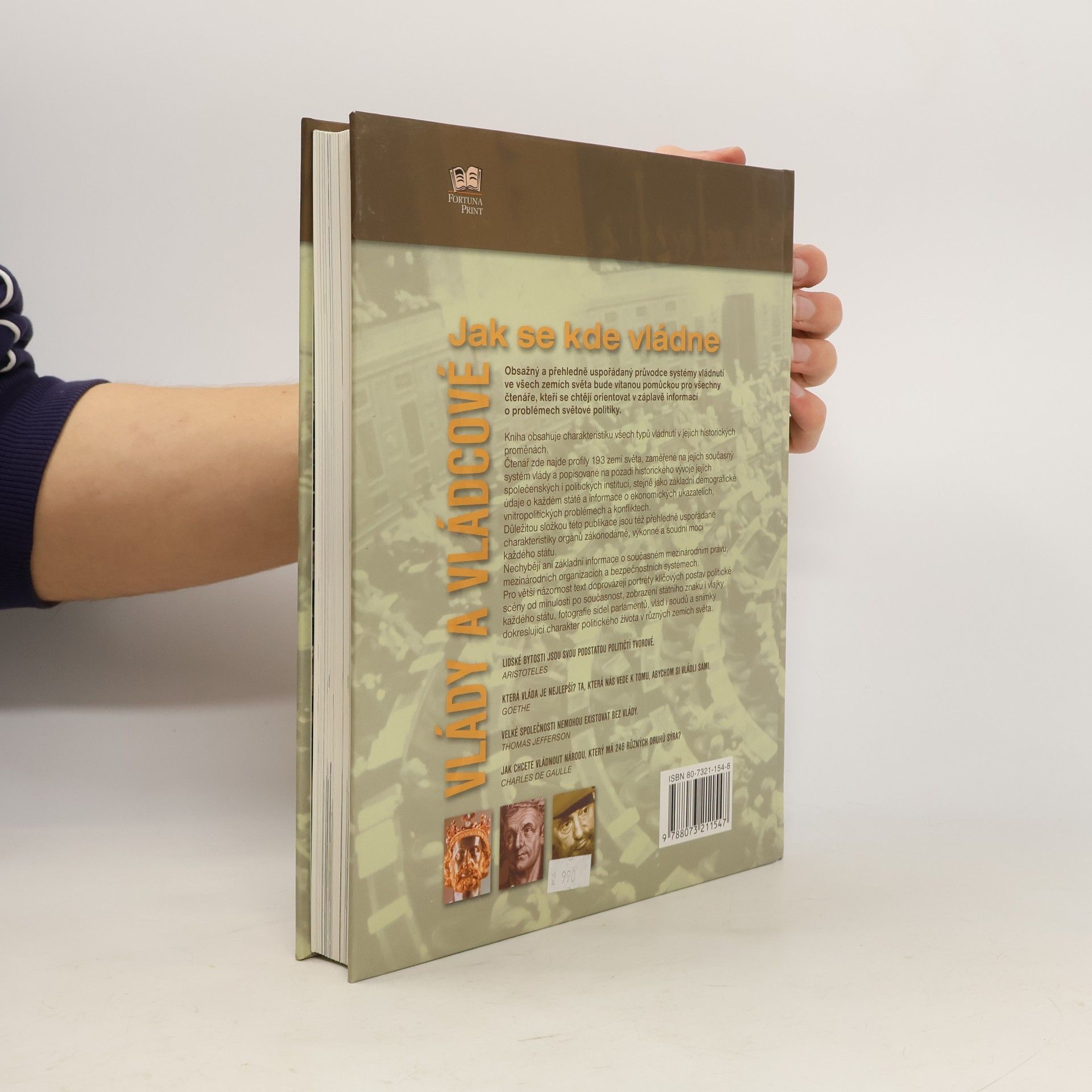 Obsažný a přehledně uspořádaný průvodce systémy vládnutí ve všech zemích světa je vítanou pomůckou pro všechny čtenáře, kteří se chtějí orientovat v záplavě informací o problémech světové politiky. Pro větší názornost text doprovázejí portréty klíčových postav politické scény od minulosti po současnost, zobrazení státního znaku i vlajky každého státu a snímky dokreslující charakter politického života v různých zemích světa.... celý text