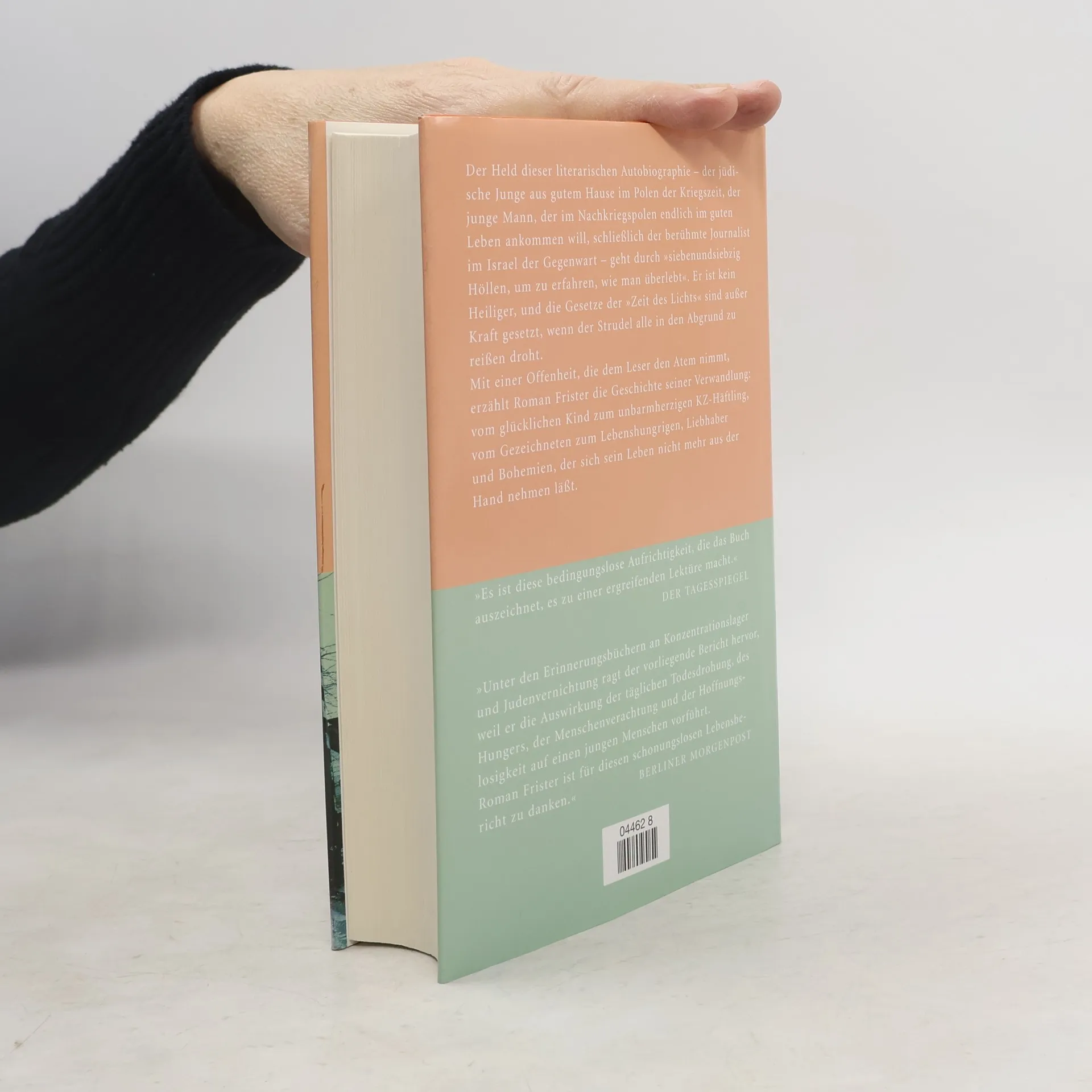 Der Geschmack des Brotes, der Liebe und der Freiheit. „Wenn ich nicht fähig bin, die ganze Wahrheit zu schreiben, muß ich meinen Computer abstellen.“ Was Roman Frister, Schriftsteller und Journalist in Israel, hier vorlegt, ist so etwas wie eine literarische Selbstentblößung. Der Held seines autobiographischen Buches, zunächst der jüdische Junge aus gutem Hause im Polen der Kriegszeit, dann der junge Mann, der im Nachkriegspolen endlich im guten Leben ankommen will, schließlich der berühmte Journalist in Israel, geht „durch 77 Höllen, um zu erfahren, wie man überlebt“. Er ist kein Heiliger, und die Gesetze der „Zeit des Lichts“ sind außer Kraft gesetzt. Auch im Ghetto und im Lager gelten Freundschaft und Menschlichkeit nichts, wenn der Strudel alle in den Abgrund zu reißen droht. Mit schonungsloser Offenheit erzählt Frister seine Geschichte: die eines Lebenshungrigen, Liebhabers und Bohemiens, der sich sein Leben nicht mehr aus der Hand nehmen läßt.