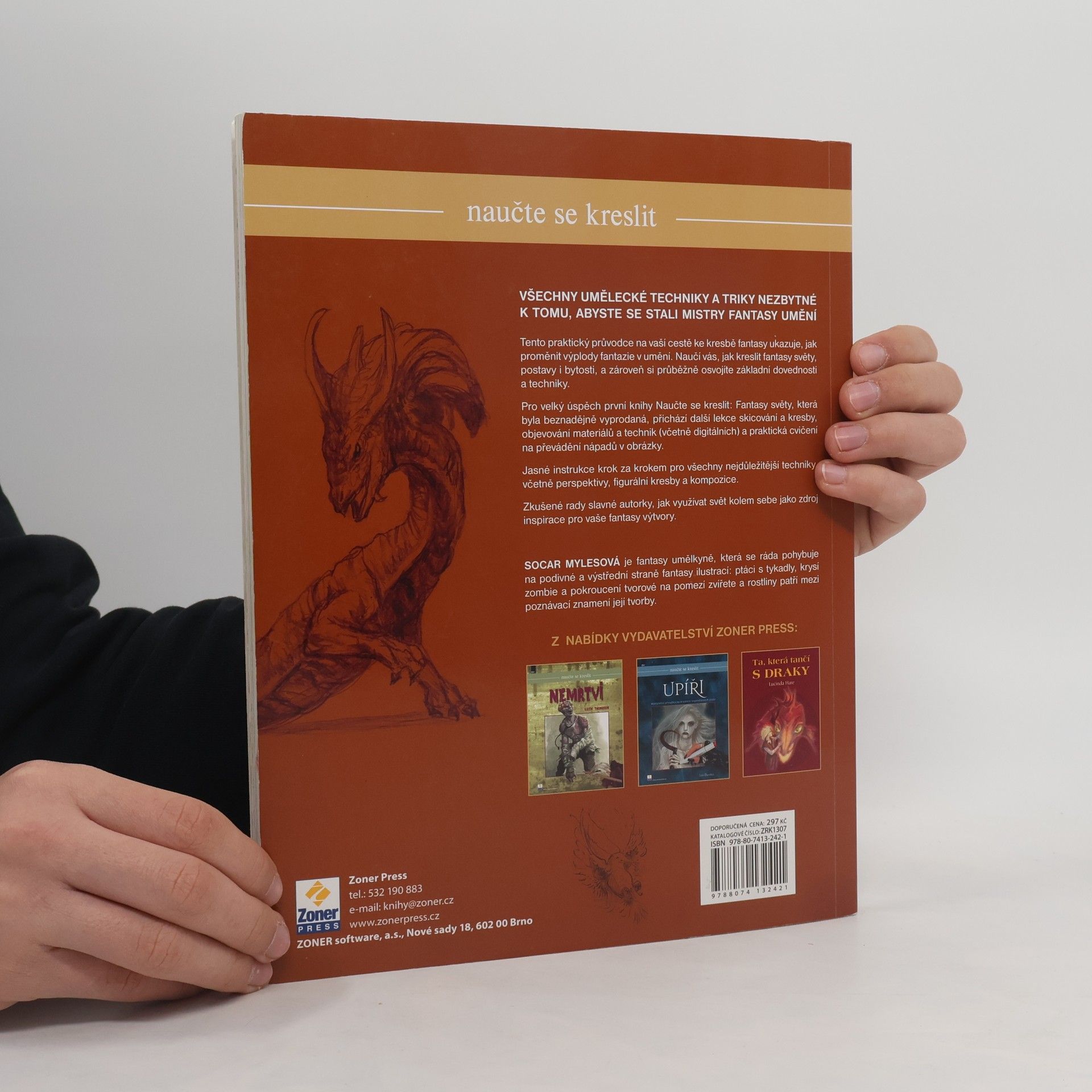 Všechny umělecké techniky a triky nezbytné k tomu, abyste se stali mistry fantasy umění! Tato kniha se stane vaším praktickým průvodcem na cestě ke kresbě fantasy – ukáže vám, jak proměnit výplody fantazie v umění, jak kreslit fantasy světy, bytosti i různé postavy. Zároveň si průběžně osvojíte základní kreslicí dovednosti i techniky. Jasné instrukce pro všechny nejdůležitější techniky, včetně perspektivy, figurální kresby a kompozice, vám krok za krokem podá autorka Socar Mylesová, slavná fantasy umělkyně. Poradí vám, jak využívat svět kolem sebe jako zdroj inspirace pro fantasy výtvory, jak převést nápad v obrázek a co často podněcuje její tvorbu. Důraz klade na experimentování, tvořivost a objevování materiálů. V přehledných lekcích se dozvíte vše potřebné nejen o základech kreslení a technikách vytváření obrazů, ale také získáte základní průpravu z anatomie potřebnou pro vytvoření fantaskních, avšak uvěřitelných bytostí. Rovněž se seznámíte se sedmi dokončenými autorčinými kresbami vznikajícími v knize kousek po kousku.