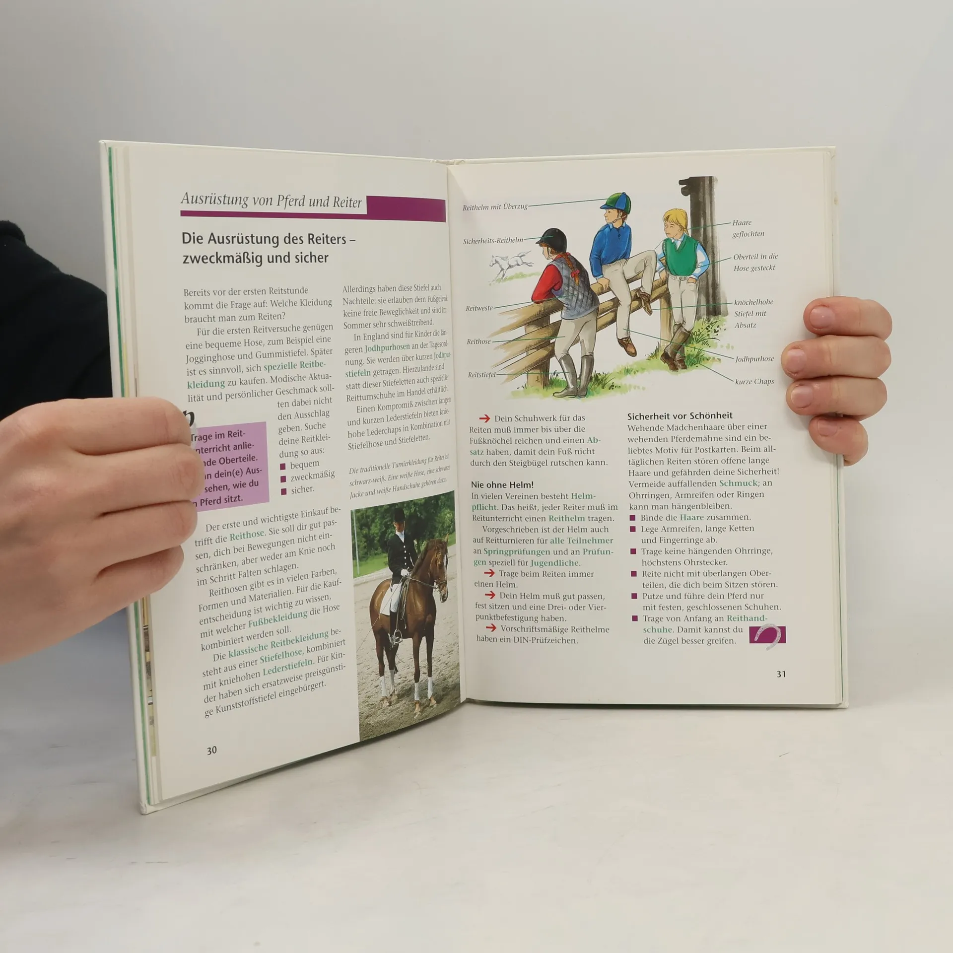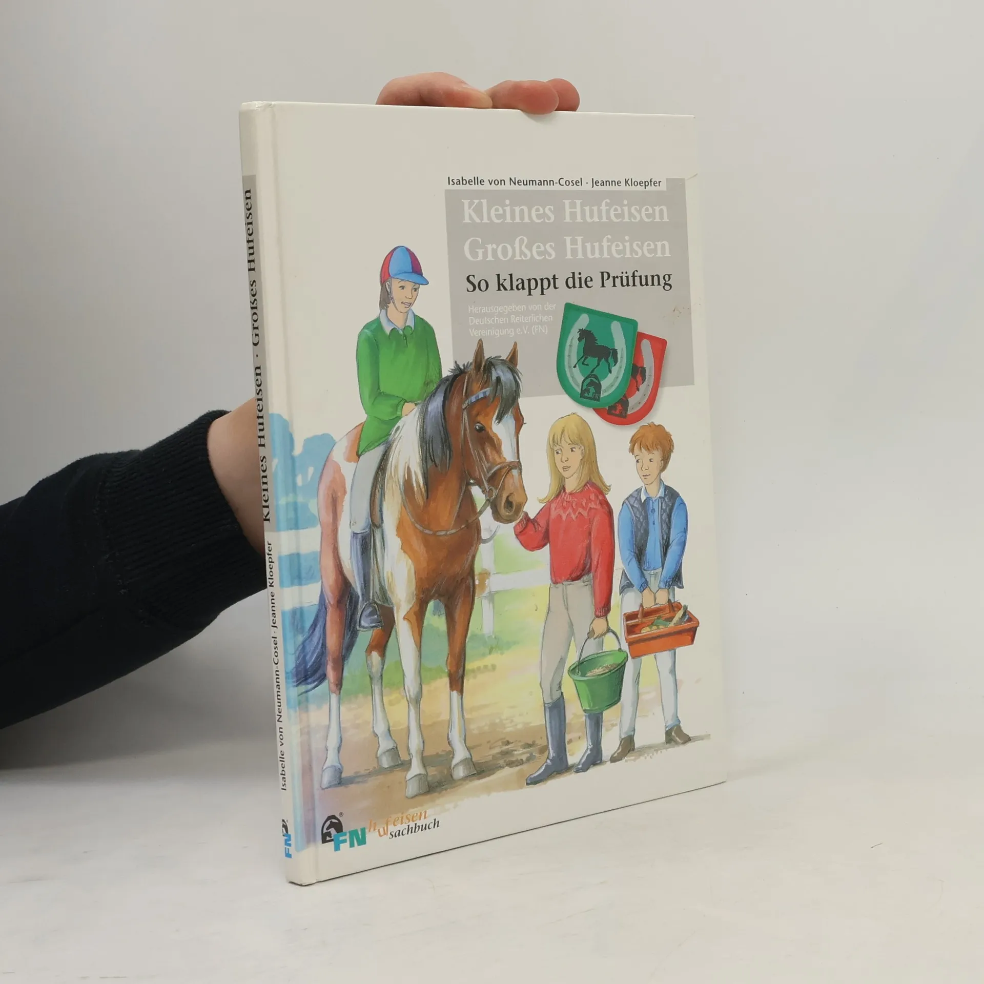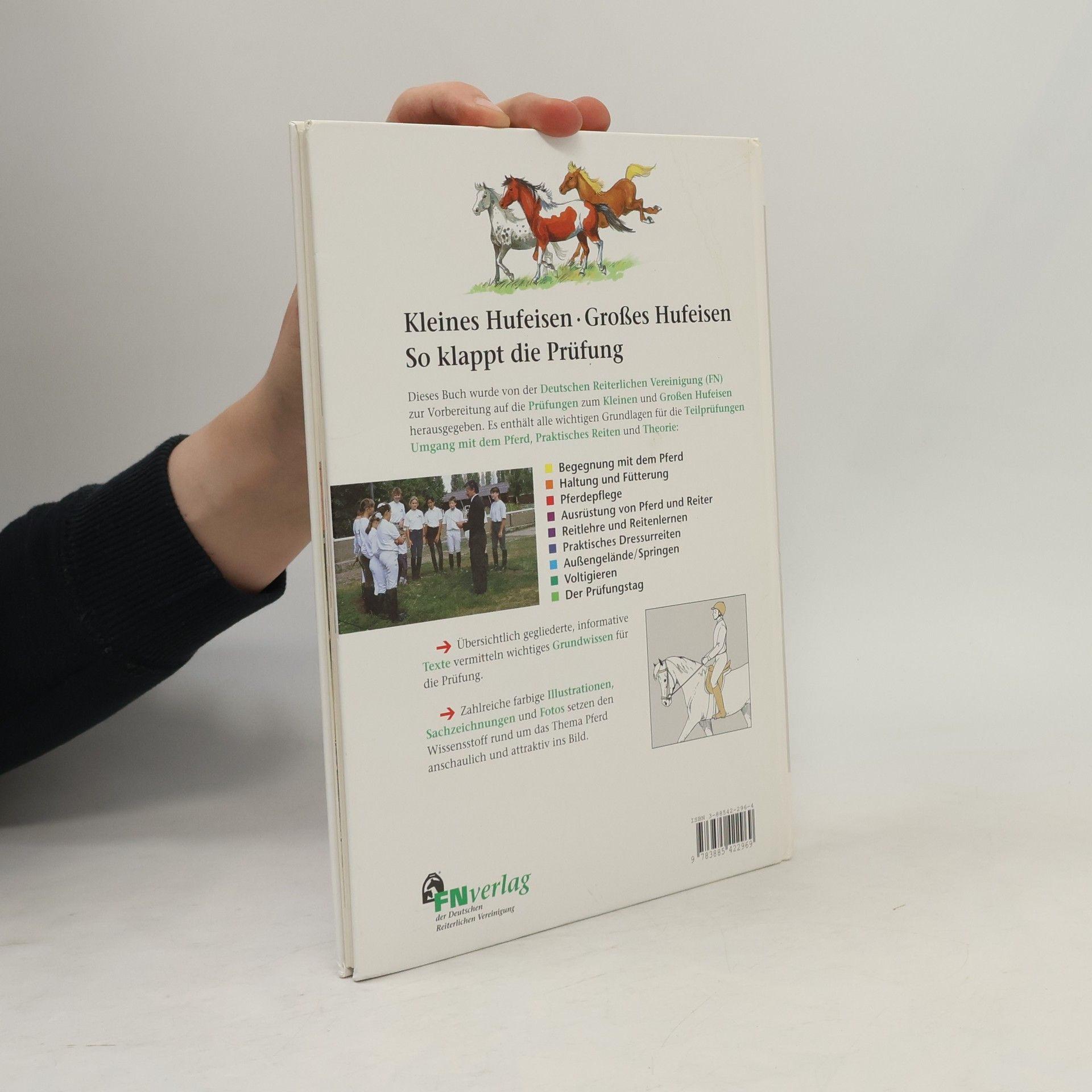 Das „Kleine Hufeisen“, ein Abzeichen der Deutschen Reiterlichen Vereinigung (FN), erfreut sich bei Kindern großer Beliebtheit: jedes Jahr werden rund 20.000 Prüfungen abgelegt. Dieses Sachbuch für Kinder ver-mittelt auf attraktive, interessante Weise den gesamten Wissensstoff für das „Kleine Hufeisen“, einschließlich der alternativ möglichen Teilprüfung Voltigieren und der Aufbauprüfung „Das große Hufeisen“. Für die sachliche Richtigkeit bürgt die Deutsche Reiterliche Vereinigung als Herausgeber. Es geht um Pferdehaltung und -pflege, den Umgang mit dem Pferd und der Reitausrüstung, die Anforderungen im praktischen Reiten und den Ablauf der Prüfung. Aktualisiert nach APO 2010.