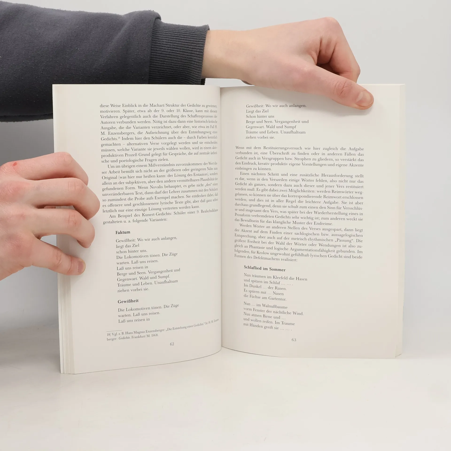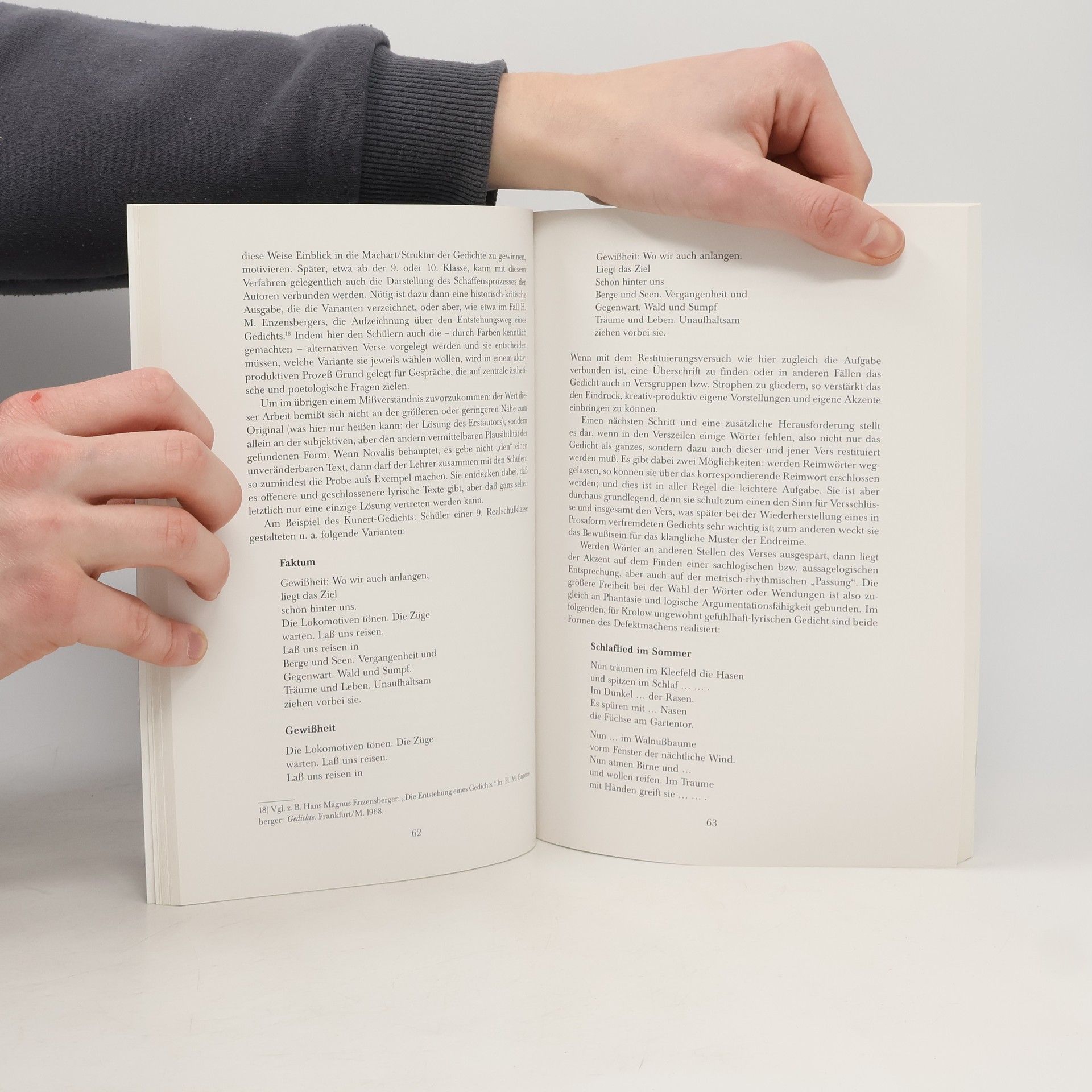 Trotz verschiedenster didaktischer Konzeptionen in den letzten Jahrzehnten sind bestimmte Konstanten seit 150 Jahren unangetastet geblieben: „die absolute Dominanz des kognitiven Vorgehens, in der Zieldiskussion die Vorrangstellung von Erkenntnis und Wissen, das Arrangement des Unterrichts, in dem die Wortgewandten und Schnellen dominieren, die weitgehende Vernachlässigung der sinnlichen Seite von Literatur, vor allem aber die fraglose Priorität des literarischen Objekts gegenüber dem Subjekt des Lektüreprozesses.“ Gerhard Haas hingegen realisiert eine pädagogisch fundierte Umkehrung des Subjekt-Objekt-Verhältnisses und stellt damit den Literaturunterricht „vom Kopf auf die Füße“. Obwohl von engagierten LehrerInnen in der Praxis schon vielversprechende Versuche in dieser Richtung unternommen worden sind, fehlt bisher die Grundlage für diese andere Art des Literaturunterrichts. Beides liefert dieses Buch und stellt damit einen unverzichtbaren Bestandteil für die Praxis des Deutschunterrichts in der Primar- und Sekundarstufe.