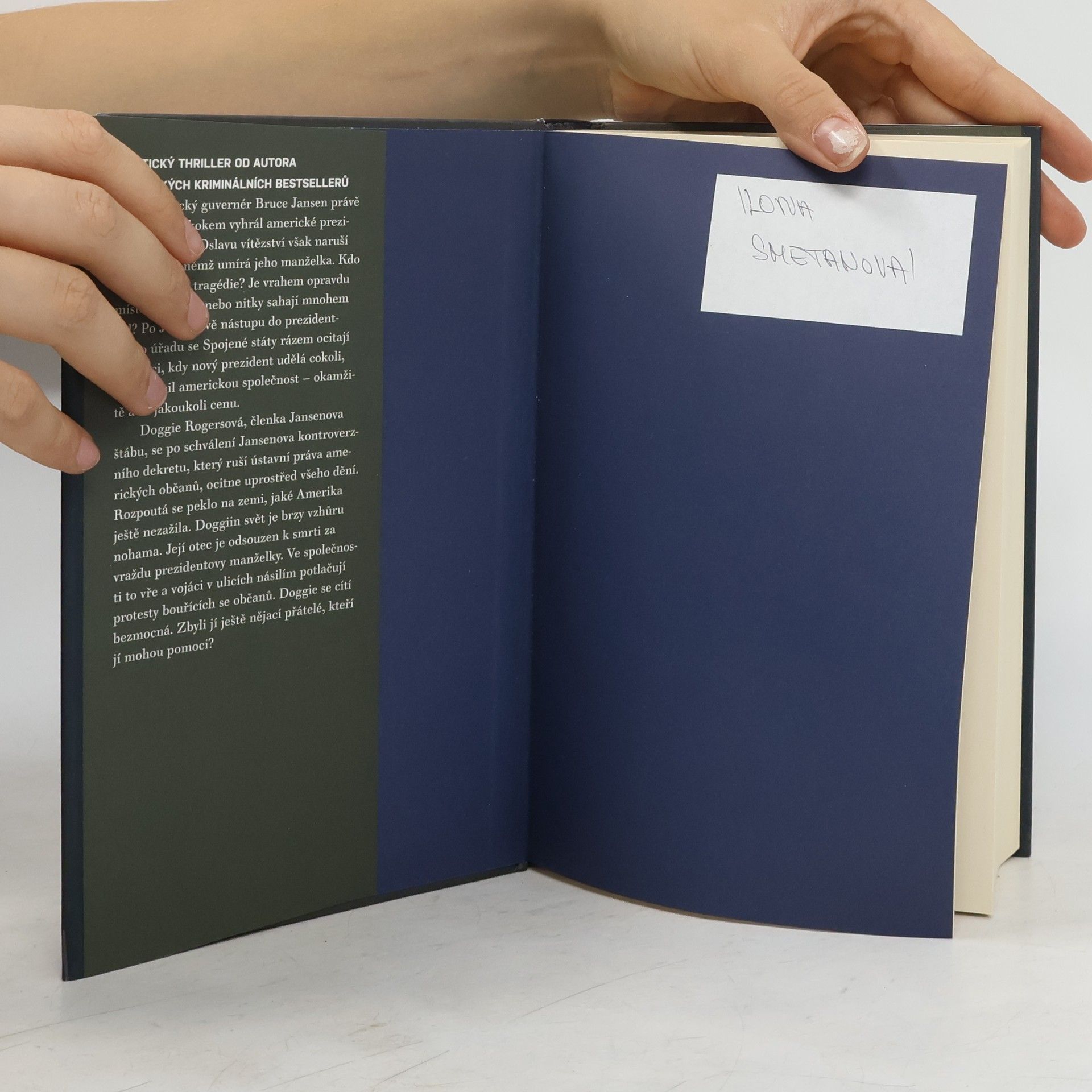 Politický thriller od autora severských kriminálních bestsellerů. Demokratický guvernér Bruce Jansen právě vyhrál s velkým náskokem americké prezidentské volby. Oslava vítězství je však pokažena atentátem, při němž umírá jeho manželka. Kdo stojí v pozadí tragédie? Je vrahem opravdu místní podivín, nebo nitky sahají dál? Po Jansenově nástupu do úřadu prezidenta se Spojené státy rázem ocitají v situaci, kdy nový prezident udělá cokoliv, aby změnil americkou společnost — okamžitě a za jakoukoliv cenu. Doggie Rogersová, členka Jansenova štábu, se po schválení Jansenova kontroverzního dekretu, který ruší ústavní práva amerických občanů, ocitne uprostřed všeho dění. Rozpoutá se peklo na zemi, jaké Amerika ještě nezažila. Doggiin svět je brzy vzhůru nohama. Její otec je odsouzen k trestu smrti za vraždu prezidentovy ženy. Ve společnosti to vře a vojáci v ulicích násilím potlačují protesty bouřících se občanů. Doggie se cítí bezmocná. Zbyli jí ještě nějací přátelé, kteří jí mohou pomoci?