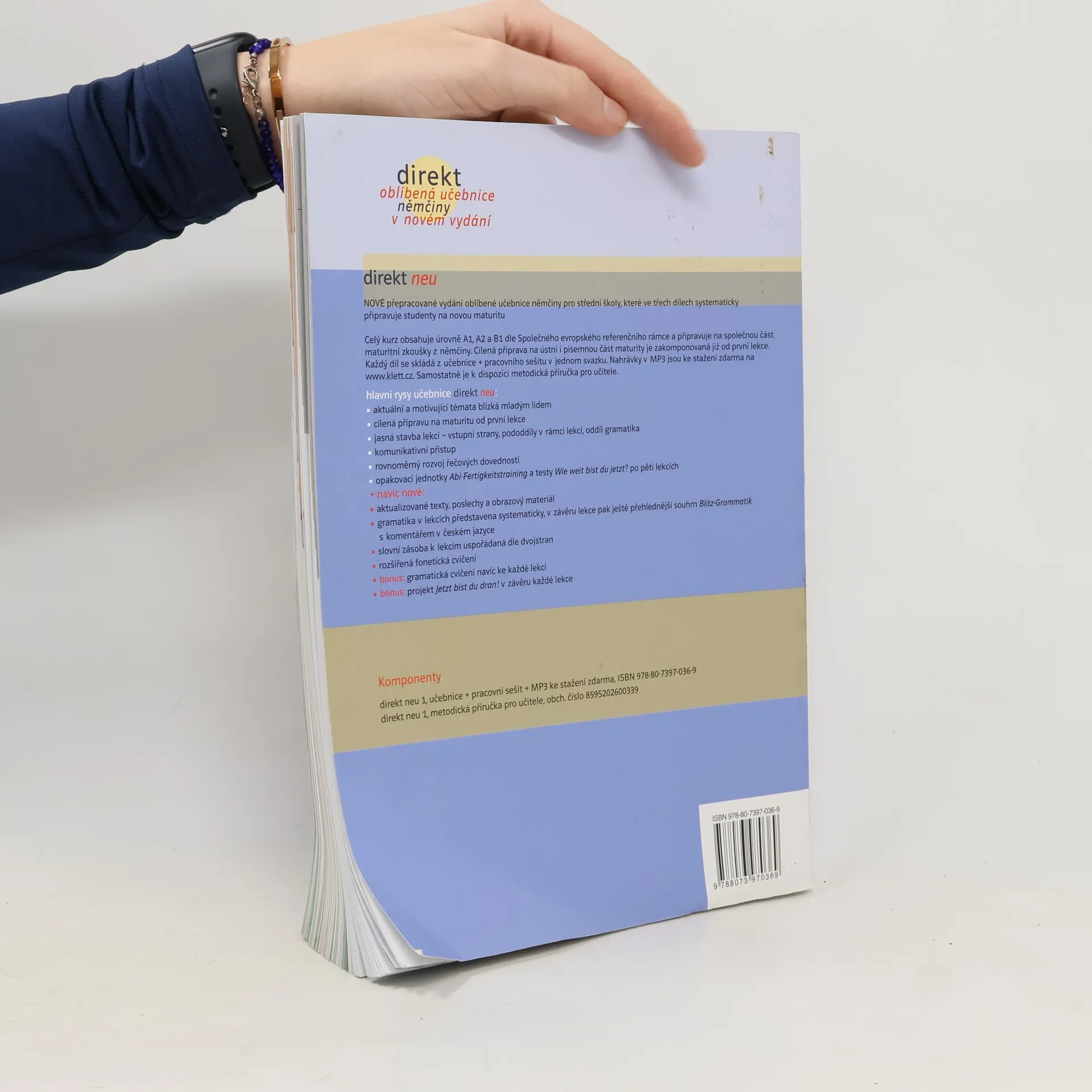 Direkt 1 Neu je osvědčená učebnice němčiny pro střední školy v novém aktualizovaném vydání, které zohledňuje připomínky a požadavky vyučujících i studentů německého jazyka a systematicky připravuje k nové maturitě. Celé nové třídílné vydání zahrnuje úrovně A1-B1 dle SERR. Direkt 1 NEU vychází z původního vydání, studenti naleznou od prvního dílu cílenou přípravu na novou maturitu a budou rovnoměrně rozvíjet v rozmanitých cvičeních všechny jazykové dovednosti. Zároveň však přepracované vydání vychází z požadavků vyučujících němčiny a jejich studentů.
