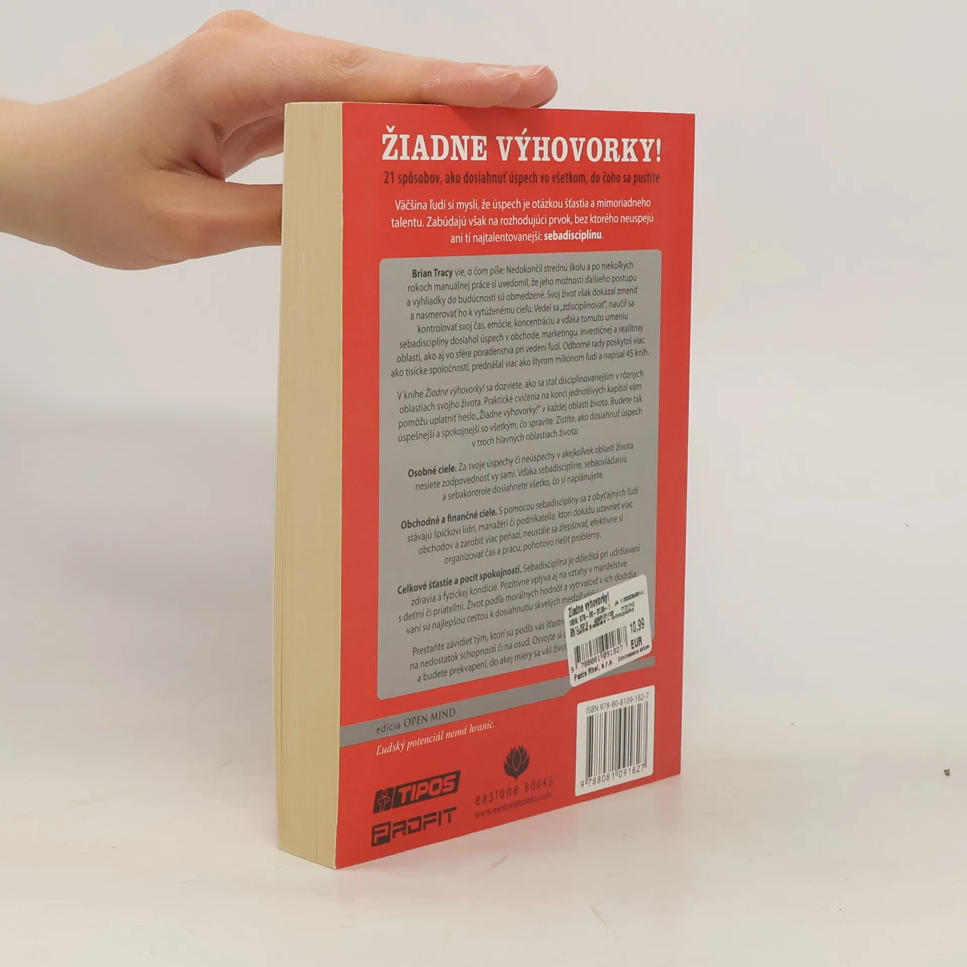 21 spôsobov, ako dosiahnuť v živote všetko, po čom túžite, a to vďaka sebadisciplíne. Väčšina ľudí si myslí, že úspech je otázkou šťastia a mimoriadneho talentu. Zabúdajú však na rozhodujúci prvok, bez ktorého neuspejú ani tí najtalentovanejší: sebadisciplínu. Brian Tracy, autor bestsellerov Najprv zjedzte žabu, Vytvorte si svoju vlastnú budúcnosť a titulu Ako vedú úspešní lídri vie, o čom v tejto knihe píše: Nedokončil strednú školu a po niekoľkých rokoch manuálnej práce si uvedomil, že jeho možnosti ďalšieho postupu a vyhliadky do budúcnosti sú obmedzené. Svoj život však dokázal zmeniť a nasmerovať ho k vytúženému cieľu. Vedel sa „zdisciplinovať“, naučil sa kontrolovať svoj čas, emócie, koncentráciu a vďaka tomuto umeniu sebadisciplíny dosiahol úspech v obchode, marketingu, investičnej a realitnej oblasti, ako aj vo sfére poradenstva pri vedení ľudí. Odborné rady poskytol viac ako tisícke spoločností, prednášal viac ako štyrom miliónom ľudí a napísal 45 kníh.