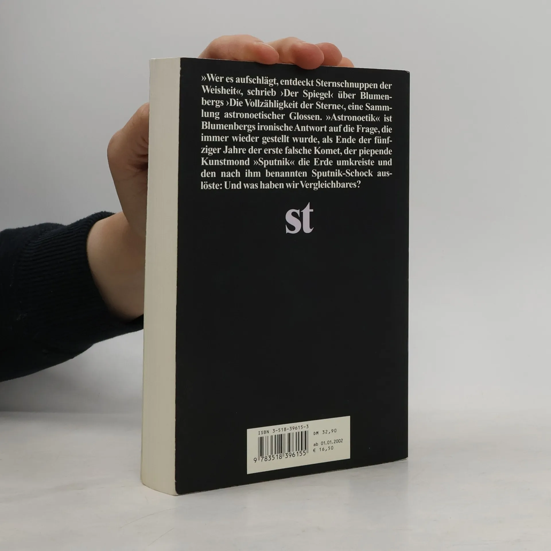 Die Vollzähligkeit der Sterne ist eine Sammlung astronoetischer Glossen. »Astronoetik« ist Blumenbergs ironische Antwort auf die Frage, die immer wieder gestellt wurde, als Ende der fünfziger Jahre der erste falsche Komet, der piepende Kunstmond »Sputnik«, die Erde umkreiste und in der westlichen Welt den »Sputnik-Schock« auslöste: Und was haben wir Vergleichbares? »Die Texte dieses Buches sind in fast drei Jahrzehnten entstanden, als leise Ausbildung einer Umkreisung des Begriffs von Theorie aus der instrumentellen Ohnmacht und dem Schwund des Spektakulären heraus: Wie befand man sich in dieser Welt von Welten und zu ihr? Was blieb den Daheimgebliebenen der Astronautik? Sicher nicht nur, Glossen zu machen, aber das doch auch als heitere Kompensation dafür, daß dieses Daheim nicht gemütlicher werden wollte.« Hans Blumenberg