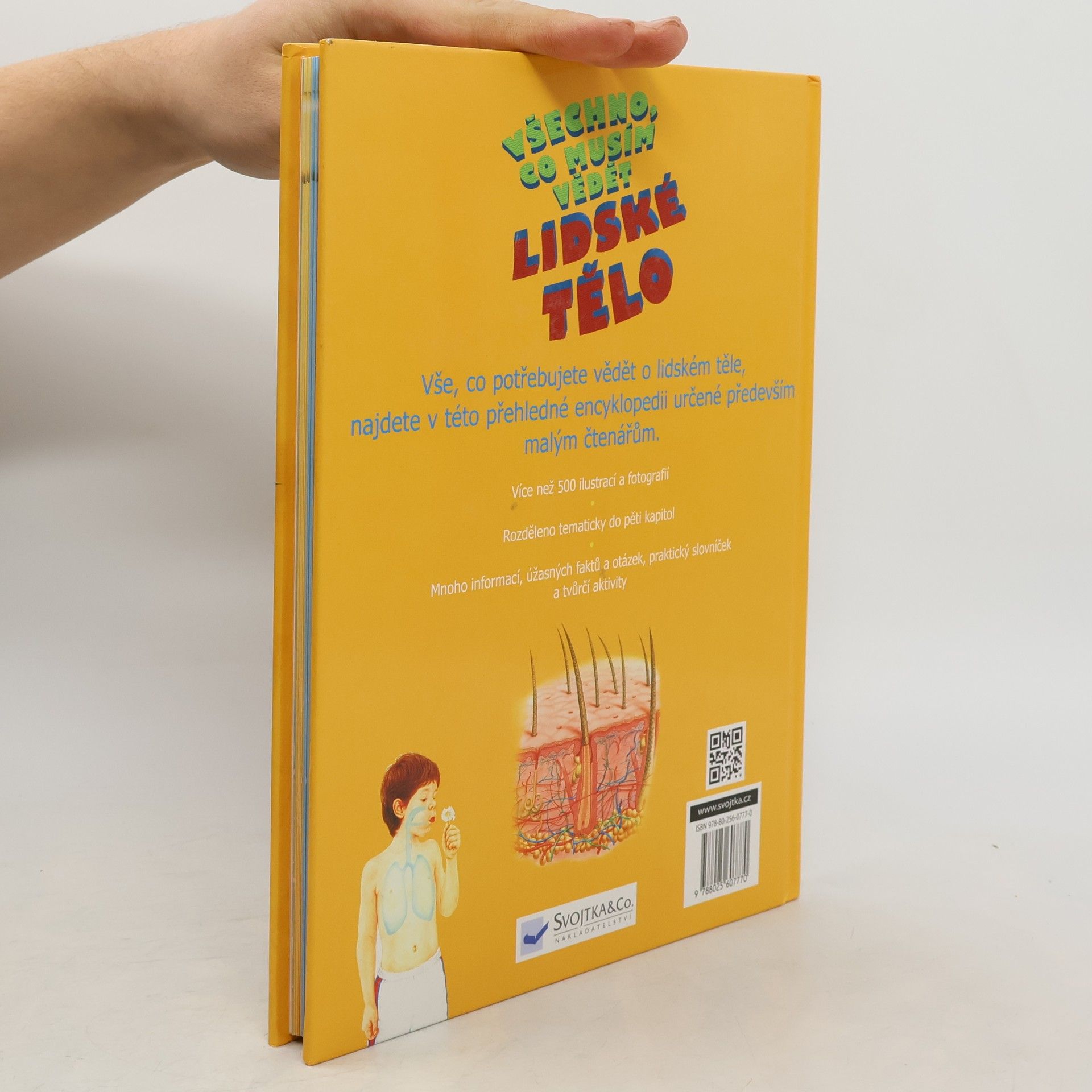 Tato jednosvazková encyklopedie o lidském těle je určena dětem mladšího školního věku. Je rozdělená do pěti kapitol a kromě srozumitelných informací obsahuje také velké množství vtipných nápadů, které děti určitě pobaví a zaujmou. Najdou zde ohromující fakta, slovníček ve formě poznámkového bloku, důležité otázky s překvapivými odpověďmi a podněty k zábavným činnostem. Kniha obsahuje přes 50 odkazů na internetové stránky a více než 500 obrázků.