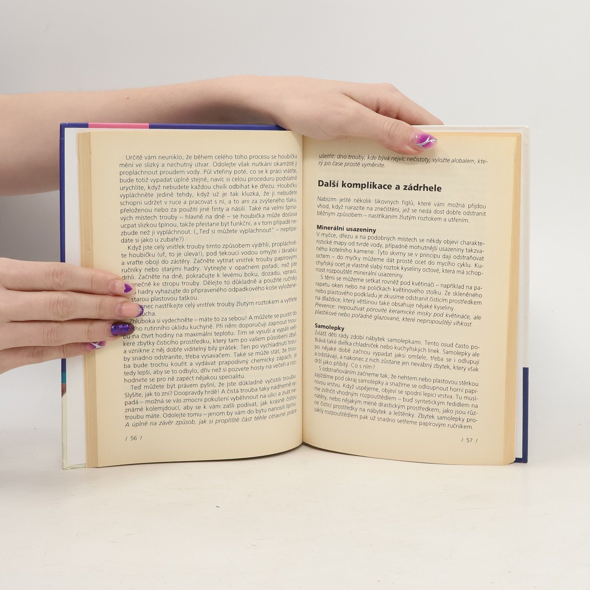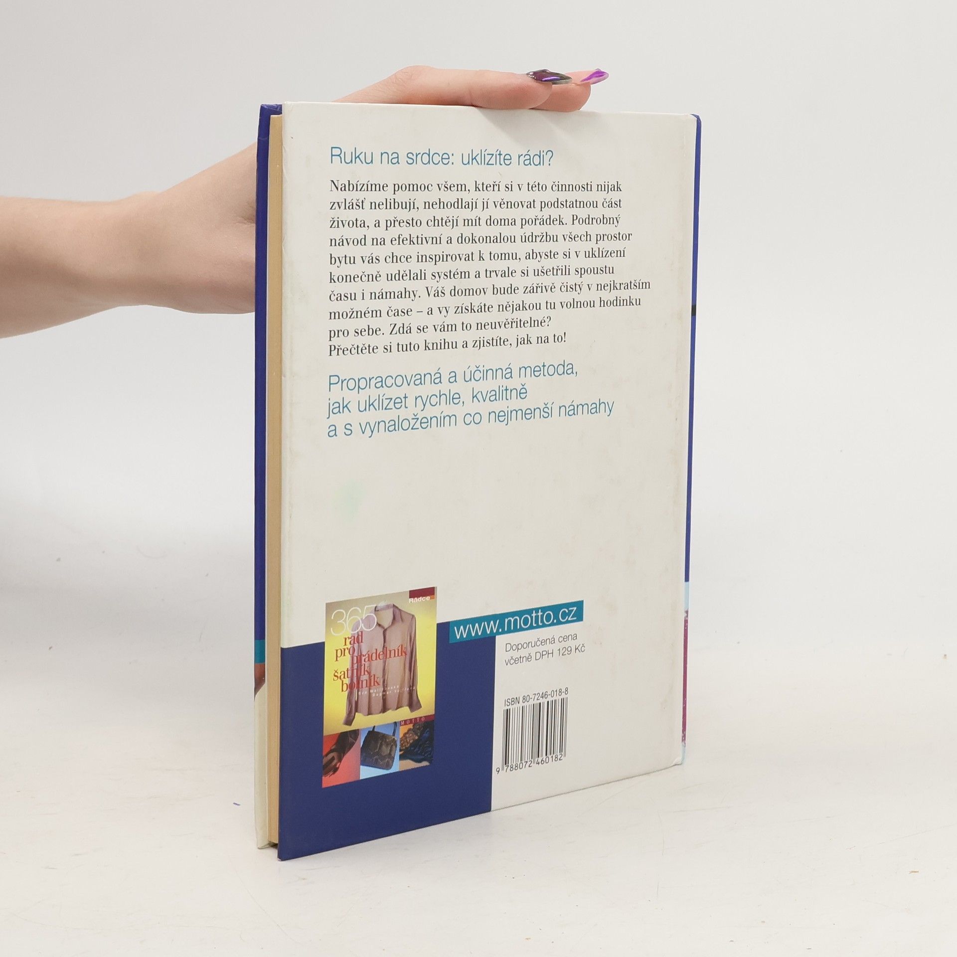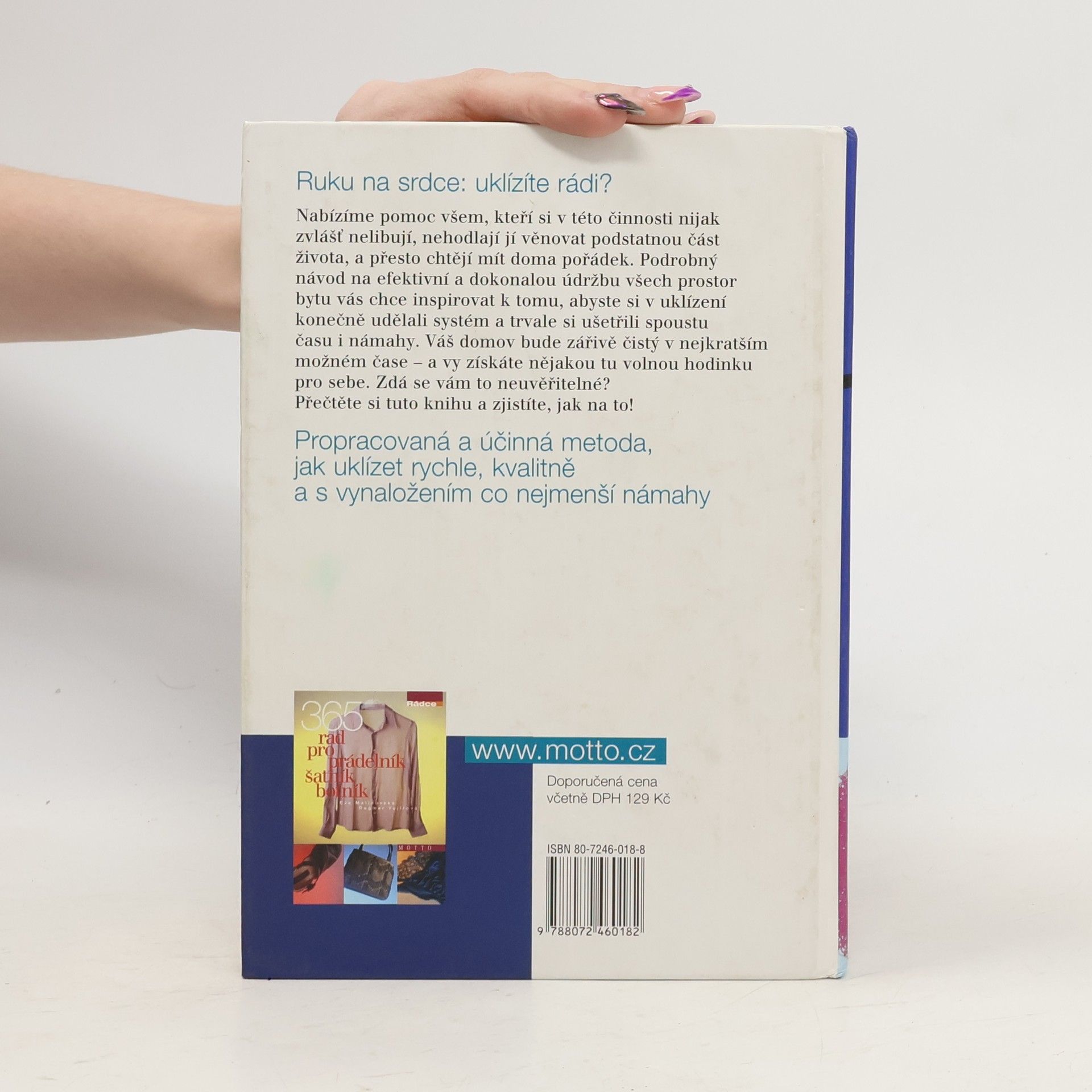 Kniha je určená začínajícím i zkušeným hospodyňkám, nabízí propracovanou a účinnou metodu, jak uklízet rychle, kvalitně a s vynaložením co nejmenší námahy. V jednotlivých kapitolách autorka seznamuje nejprve se strategií a taktikou, potřebnými pomůckami (patří mezi ně například uklízecí zástěra) a nutnými úklidovými prostředky. Po teorii následuje praktická ukázka úklidu modelové kuchyně, příslušenství, předsíně. Po prvním nakouknutí hospodyňka pohrdavě odfrkne, po podrobnějším čtení připustí, že "na tom něco bude". Vtipný návod, jak provádět běžný týdenní úklid v domácnosti systematicky a efektivně.