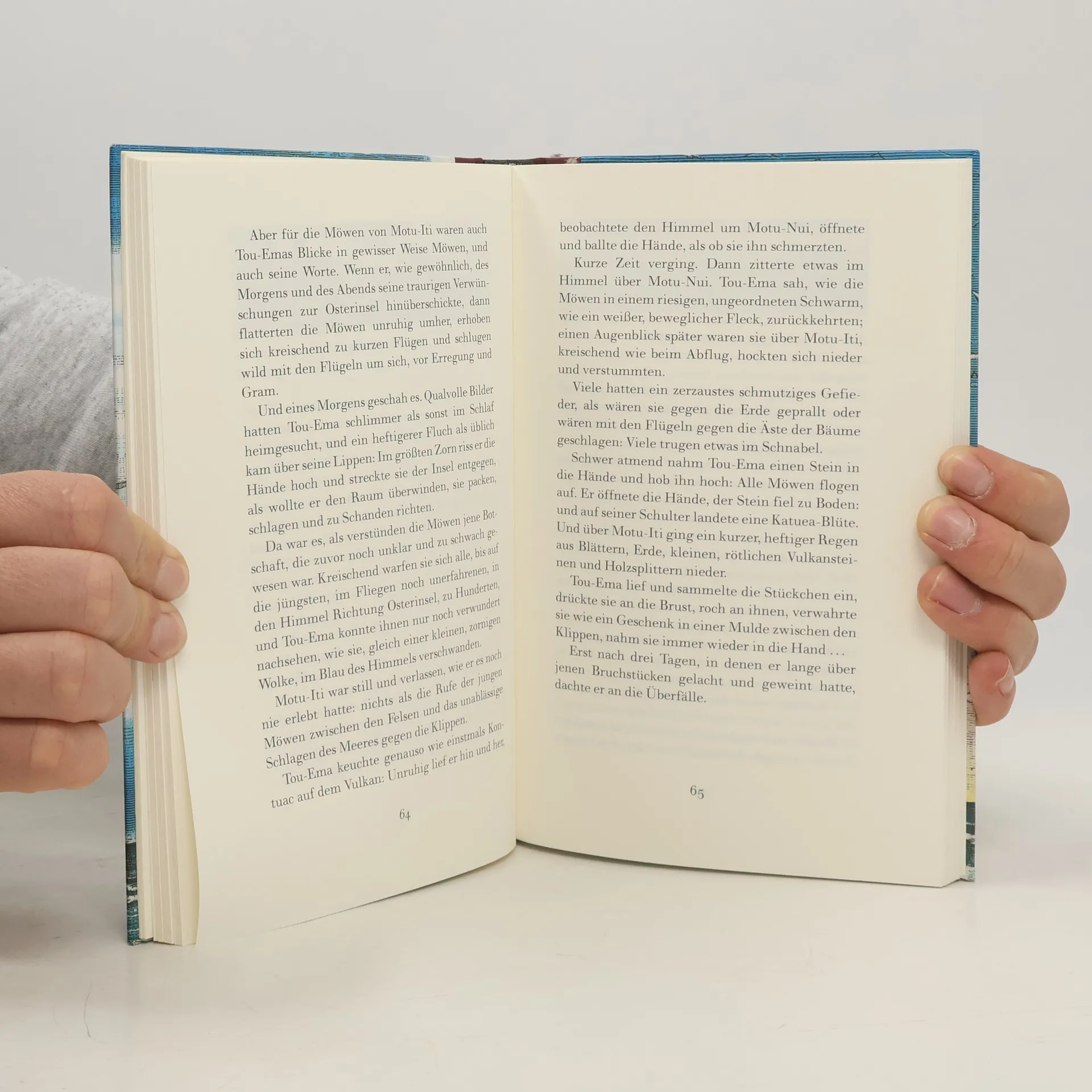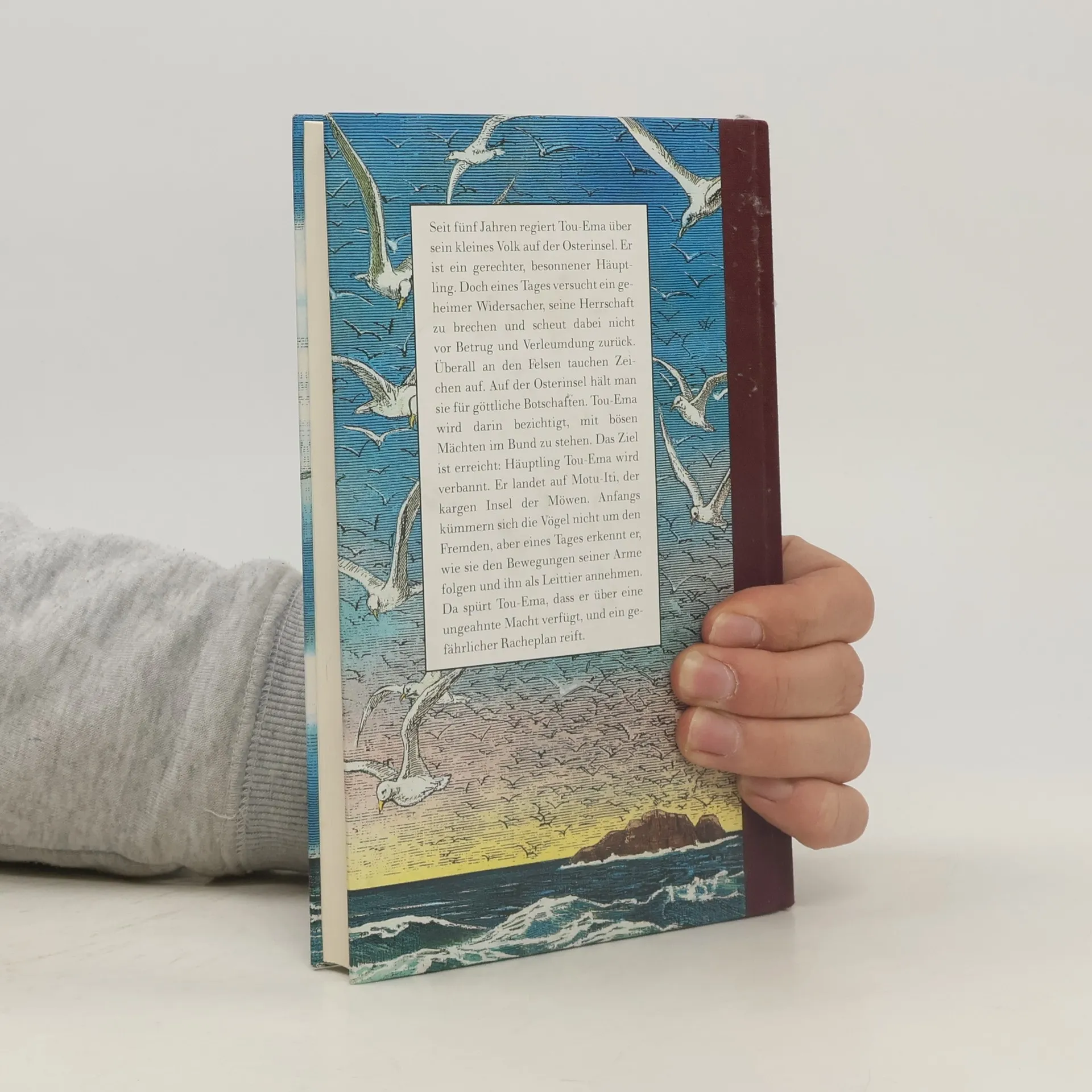Tou-Ema lebt als ein gerechter Häuptling eines kleinen Volkes auf der Osterinsel. Aber sein Widersacher Kentouac schmiedet eine Intrige und verurteilt Tou-Ema zu einem Leben auf einer einsamen Möweninsel. Nach und nach gewinnt dieser Macht über die Möwen und benutzt sie erfolgreich als Rächer. Doch als er zu seinem Volk als Häuptling und Beschützer zurückkehren darf, kann er die Vögel, die immer wieder die Insel angreifen, nicht mehr stoppen. Erst vor den riesigen steinernen Figuren am Strand, die die Eingeborenen zum Schutz errichtet haben, schrecken die Vögel zurück. Bis heute starren diese Figuren geheimnisvoll aufs Meer. »DIE BESTEN 7 BÜCHER FÜR JUNGE LESER«, AUSGEWÄHLT VON FOCUS UND DEUTSCHLANDRADIO