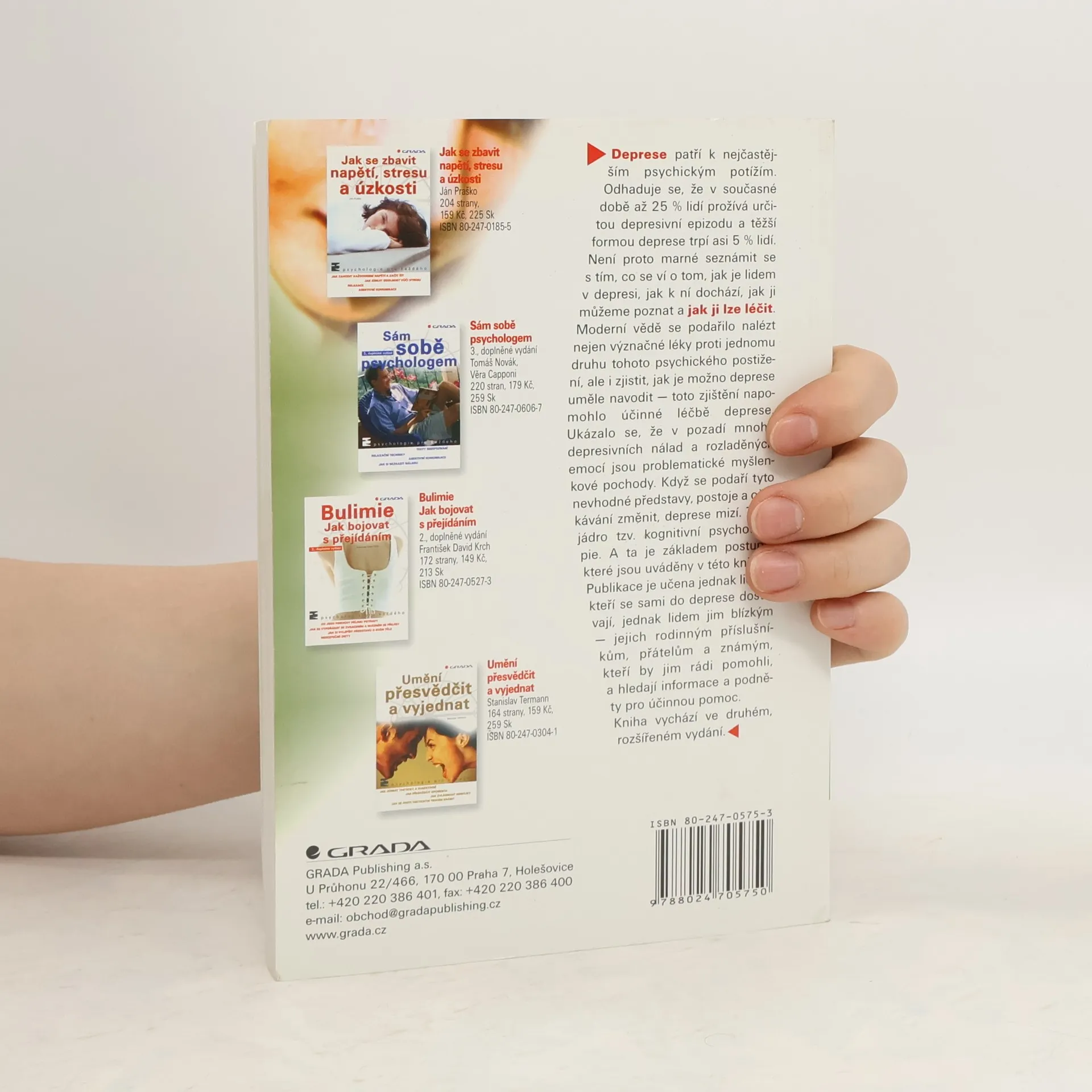 Cílem publikace je dát lidem postiženým depresí a lidem okolo nich nejzákladnější informace o tom, co deprese je, co by se při ní dělat nemělo a naopak, co se dělat může a má, aby se duševní stav ... 2., rozšířené vydání, dotisk r. 2007