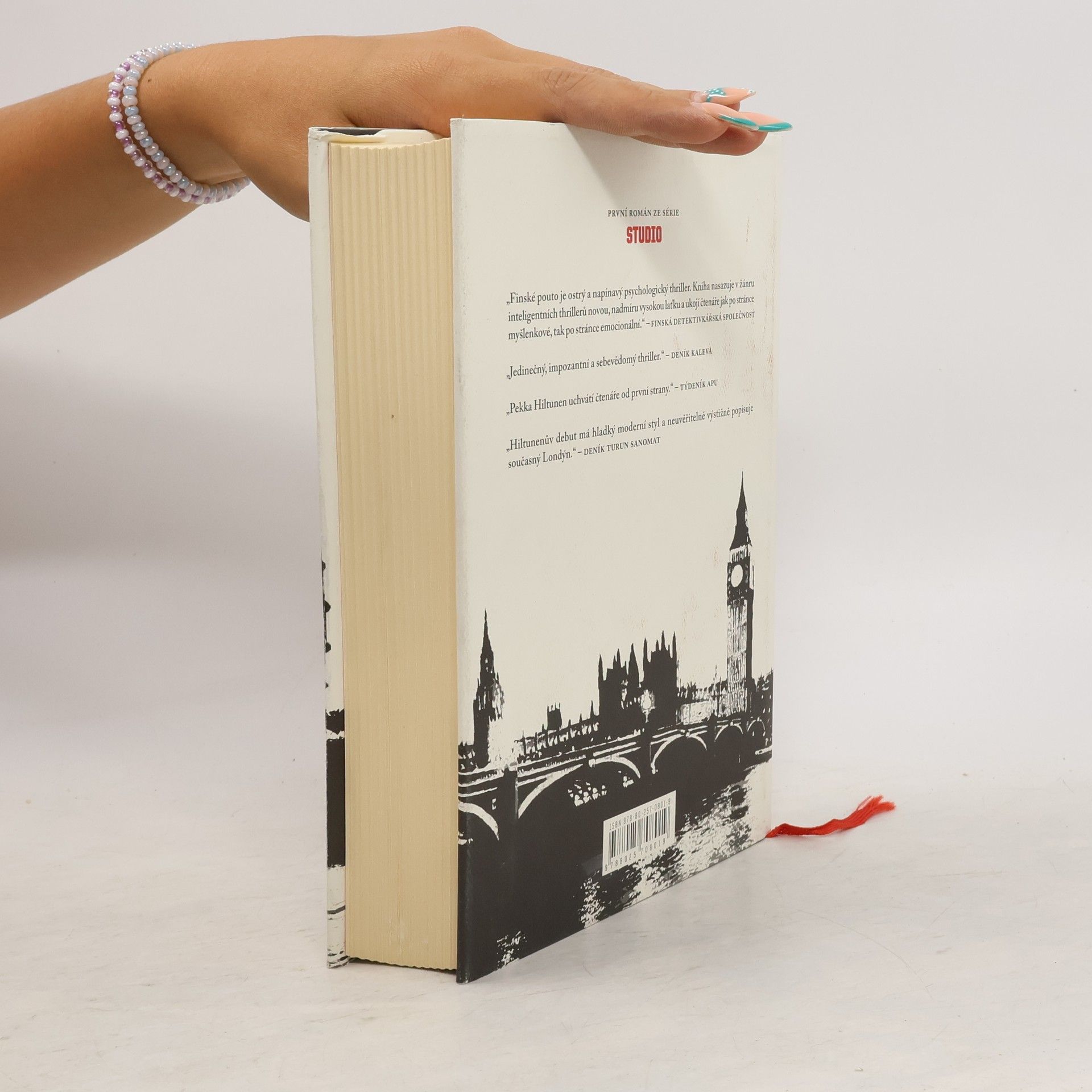 Finská grafička Lia žije osaměle v Londýně a jen těžko se seznamuje s novými lidmi. Když však poprvé v životě spatří oběť vraždy a potká okouzlující krajanku Mari, její život nabere dramatické obrátky – Mari má výjimečnou schopnost „číst lidi“, vidět v nich víc než ostatní, a proto pracuje v tajemném Studiu na Bankside, které občas bere spravedlnost do vlastních rukou a bojuje proti nebezpečným politikům či mafiánským gangům. Lia spolu s Mari nevěřícně vstupuje do zločinného podsvětí – dokáže včas rozlousknout záhadu, co je Mari zač a proč se s Liou vlastně spřátelila? Finské pouto je podmanivě vystavěný psychologický thriller ze současného Londýna. Kniha ve Finsku zaznamenala nebývalý úspěch u odborné i laické veřejnosti. Pekka Hiltunen, původní profesí novinář, získal za tento románový debut v roce 2012 ocenění Vuoden johtolanka za nejlepší kriminální román, cenu Stopa roku od Finské detektivkářské společnosti a od nakladatelstvím Gummerus cenu za nejúspěšnější knihu roku. Finské pouto bylo též nominováno na prestižní cenu deníku Helsingin Sanomat jako debut roku. Kniha si rychle získala pozornost i v zahraničí, v současnosti je překládána do francouzštiny, polštiny a češtiny.