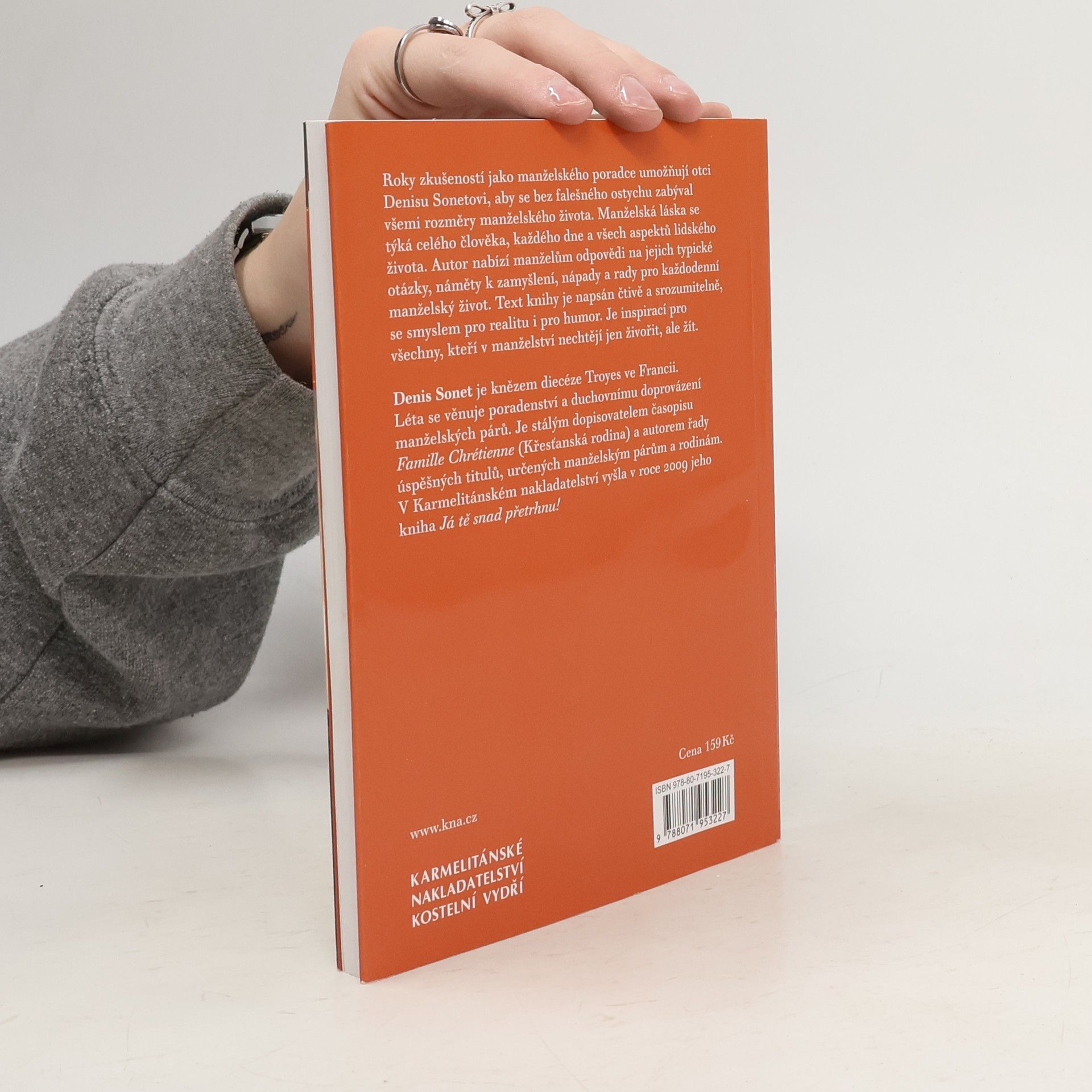 Manželská láska se týká celého člověka a každého dne. Proto je třeba uvažovat o všech aspektech života. Například o komunikaci jako zdroji informací z denního života, o fantazii jako zdroji podnětů pro potřebné změny, ke kterým v průběhu času dochází. Autor využívá své mnohaleté zkušenosti, které získal jako pracovník manželské poradny a nabízí čtenářům odpovědi na jejich otázky, náměty k zamyšlení, nápady a rady pro každodenní manželský život: Oživovat plamen lásky každý den, překonávat krize malé i velké. Komunikovat, abychom měli potřebné informace, a snít, abychom uměli udělat potřebné změny. Chtěl Bůh, abychom spolu žili právě my dva? Co bude, až budeme staří? Text je napsán stručně, srozumitelně, se smyslem pro realitu, ale i s humorem. Denis Sonet je knězem diecéze Troyes ve Francii. Léta se věnuje poradenství a duchovnímu doprovázení manželských párů a pro své zkušenosti a komunikační schopnosti se stal rovněž vyhledávaným řečníkem pro různé konference. Je stálým dopisovatelem časopisu Famille Chrétienne (Křesťanská rodina) a autorem řady úspěšných titulů, určených manželským párům a rodinám.