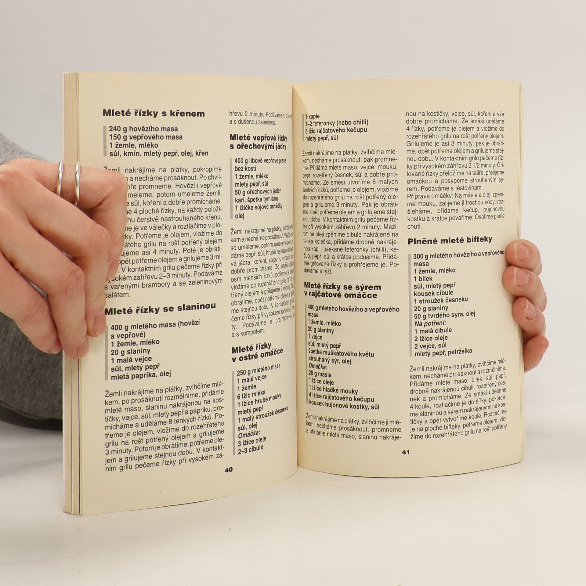 Grilování vepřového, hovězího a telecího masa, zvěřiny, ryb, drůbeže, ovoce aj. Rychlá a snadná úprava, znamenitá chuť. V nové publikaci předkládáme mnoho vyzkoušených předpisů na pokrmy připravené v grilech různého typu a na rožni. Jsou ze surovin dostupných na našem trhu a které se doma často připravují. Věříme, že publikace bude dobrou pomůckou k obohacení jídelníčků pro spokojenost mnoha rodin. Pokud není uvedeno jinak, předpisy jsou pro 4 porce.