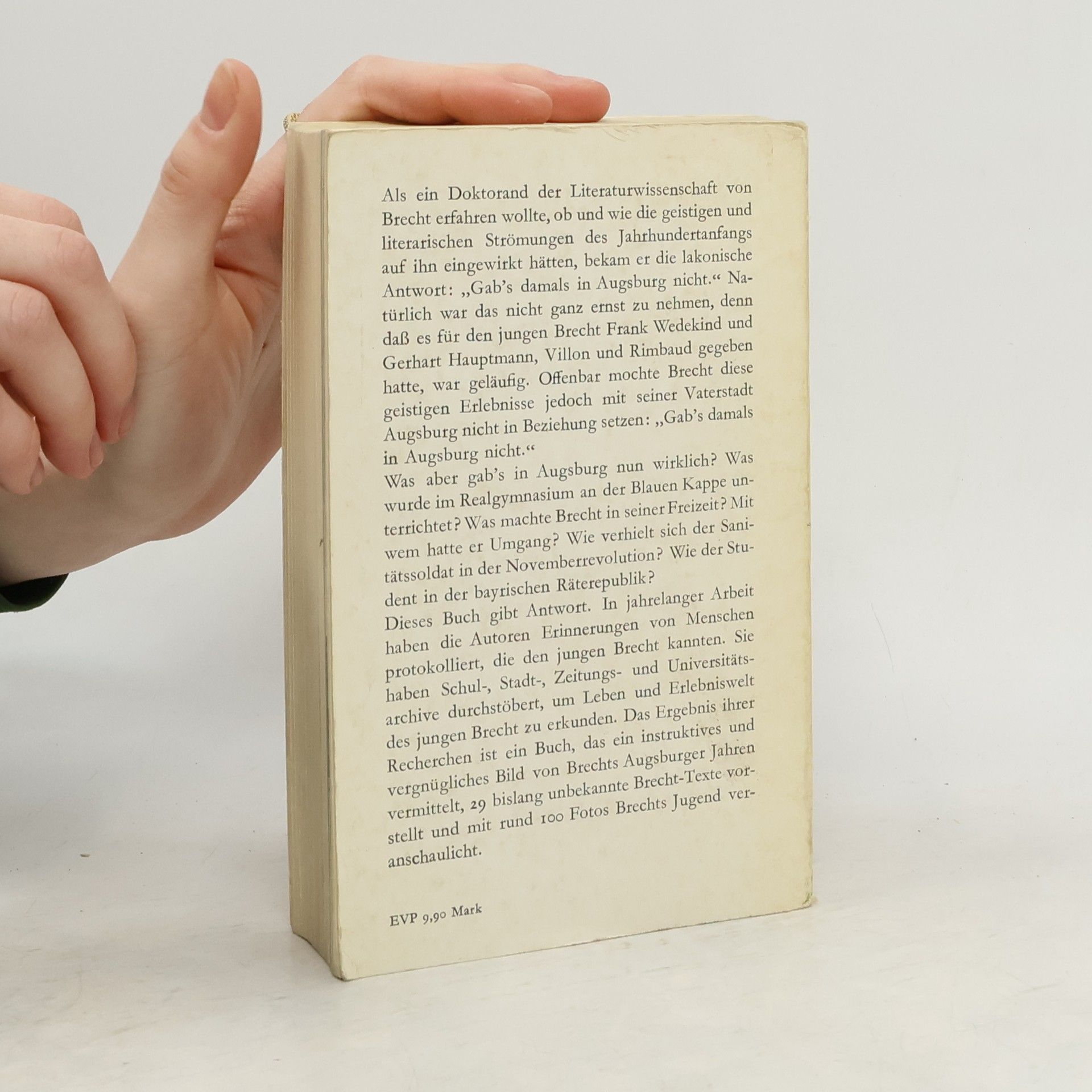 "Brecht in Augsburg" ist eine Montage. Ihr Material sind die Aussagen von Menschen, die Brecht kannten, als er noch nicht der berühmte Dichter war, sondern ein "schüchterner junger Mann". In jahrelanger Arbeit haben die Autoren Erinnerungen von Zeitgenossen protokolliert. Sie haben Schul-, Stadt-, Zeitungs- und Universitätsarchive durchstöbert, um die Erlebniswelt des jungen Brecht zu erkunden. Was machte Brecht mit seiner Freizeit? Wer waren seine Freunde und Freundinnen? Entstanden ist ein Buch , das ein vergnügliches Bild der Augsburger Jahre bis 1924 vermittelt, als Brecht nach Berlin aufbrach. Besonders eindrucksvoll sind die zahlreichen, zum Teil seltenen Fotos von Stadt und Landschaft, Familie und Freunden.