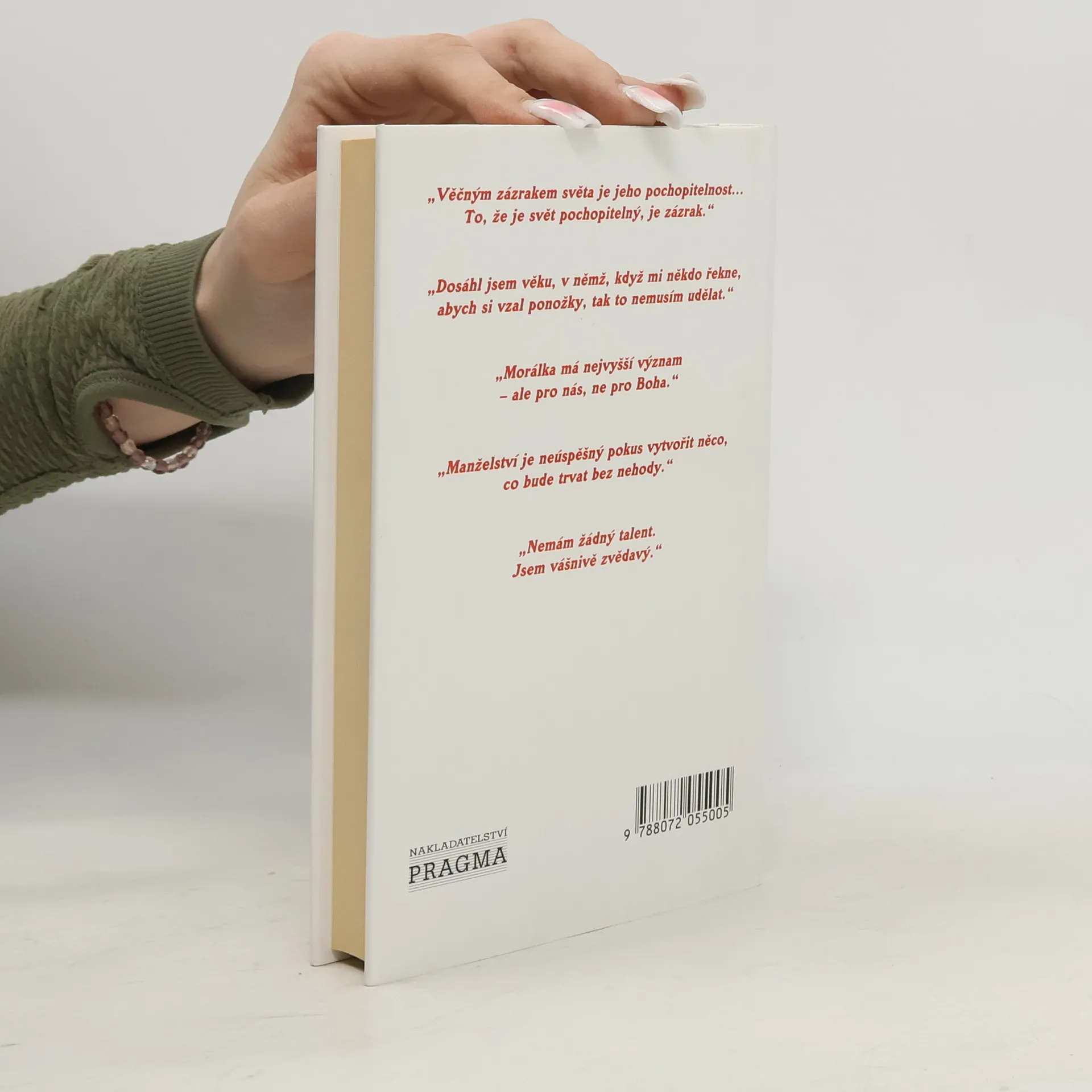 Tato sbírka přináší asi 550 citátů pronesených Einsteinem i týkajících se jeho osoby, které jsou poprvé shromážděny tématicky. Můžeme zde nalézt Einsteinovy myšlenky o Americčanech a Americe, o Němcích a o Německu, o Židech a sionismu, o válce a o míru, politice, víře, vědě i o osobnějších otázkách, jako jsou potraty, mládí a stáří, láska a manželství, hudba, domácí zvířata. Pro každého je zde něco, co ho potěší - i něco, co se ho dotkne. Čtenář objeví kapitoly věnované tomu, co Einstein řekl o jiných lidech, co řekli druzí o něm, dále obsahují biografické údaje a současný rodokmen, kde se objevují už i Einsteinova pravnoučata, odpovědi na nečastější otázky o Einsteinovi a vybranou bibliografii. Kniha je opatřena zasvěceným úvodním slovem princetonského fyzika Freemana Dysona. Sbírka uvádí dokumentaci - odkazuje především k hlavním pramenům jako Einsteinův archiv a Sebrané spisy Alberta Einsteina. Sbírka představuje Einsteina čtenářům z mhoha stránek - jednou popudivého, jindy laskavého, vřele vtipného i chladně odmítavého. Člověka, který byl zpočátku zmatený se slávy, kterou na něj svět naložil a který pak začal nenávidět lesk publicity. Vidíme také, jaké porodělal Einstein vývoj od prvího výroku sedmnáctiletého chlapce až k jeho posledním slovům, která pronesl ve svých sedmdesáti šesti letech.