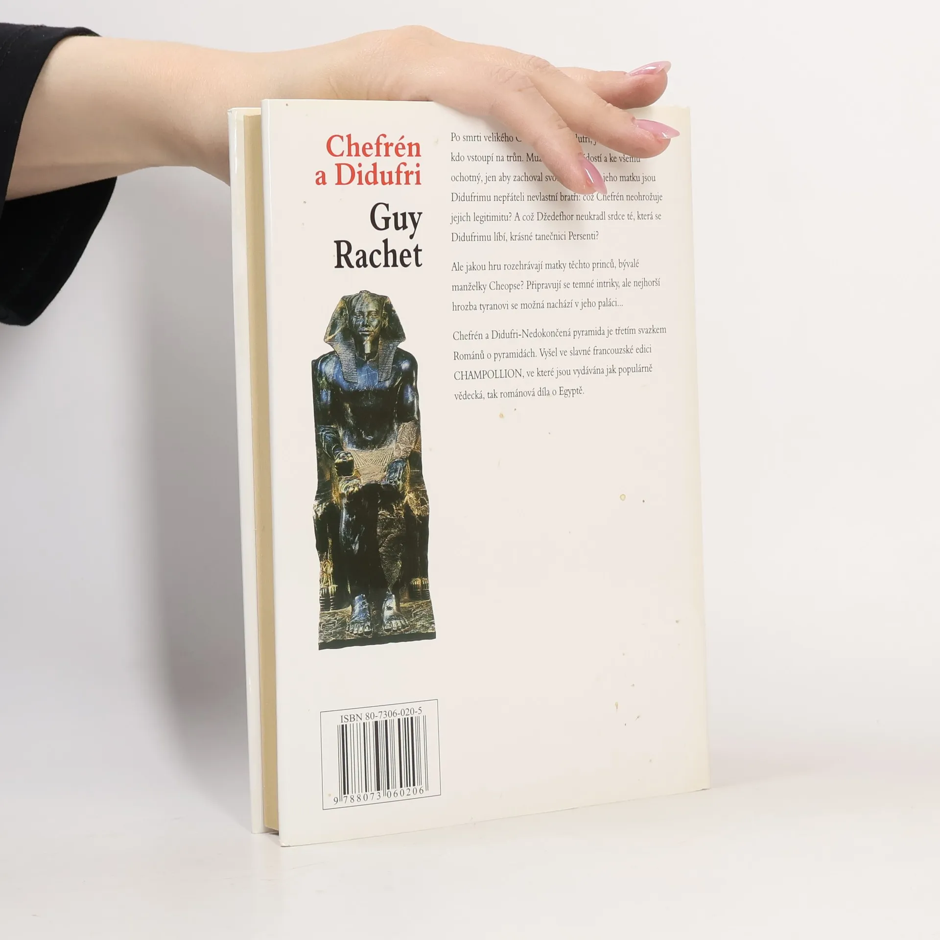 Podtitul: Nedokončená pyramida 3. díl cyklu Romány o pyramidách Třetí díl Románů o pyramidách se zabývá dobou vlády faraona Didufriho, Cheopsova syna a ctižádostivého intrikána, který nakonec končí vraždou z ruky služebníka. Po smrti faraona Cheopse nastupuje na jeho místo nejmladší syn Didufri, který za své největší nepřátele považuje nevlastní bratry Džedefhora a Chefréna: jeden je mu sokem v lásce, druhý by ho mohl ohrozit na trůnu. Ctižádostivý Didufri se stává neomezeným a nenáviděným vládcem, využívajícím k posílení své moci intrik a vražd. Odplata nakonec přichází přímo z královského paláce v podobě služebníka Upetiho, jenž faraona zavraždí a princ Chefrén se tak může stát novým králem Egypta. Historický román opět nabízí pohled do starověku a přibližuje čtenáři poutavým způsobem postavy a děje dávno minulé.