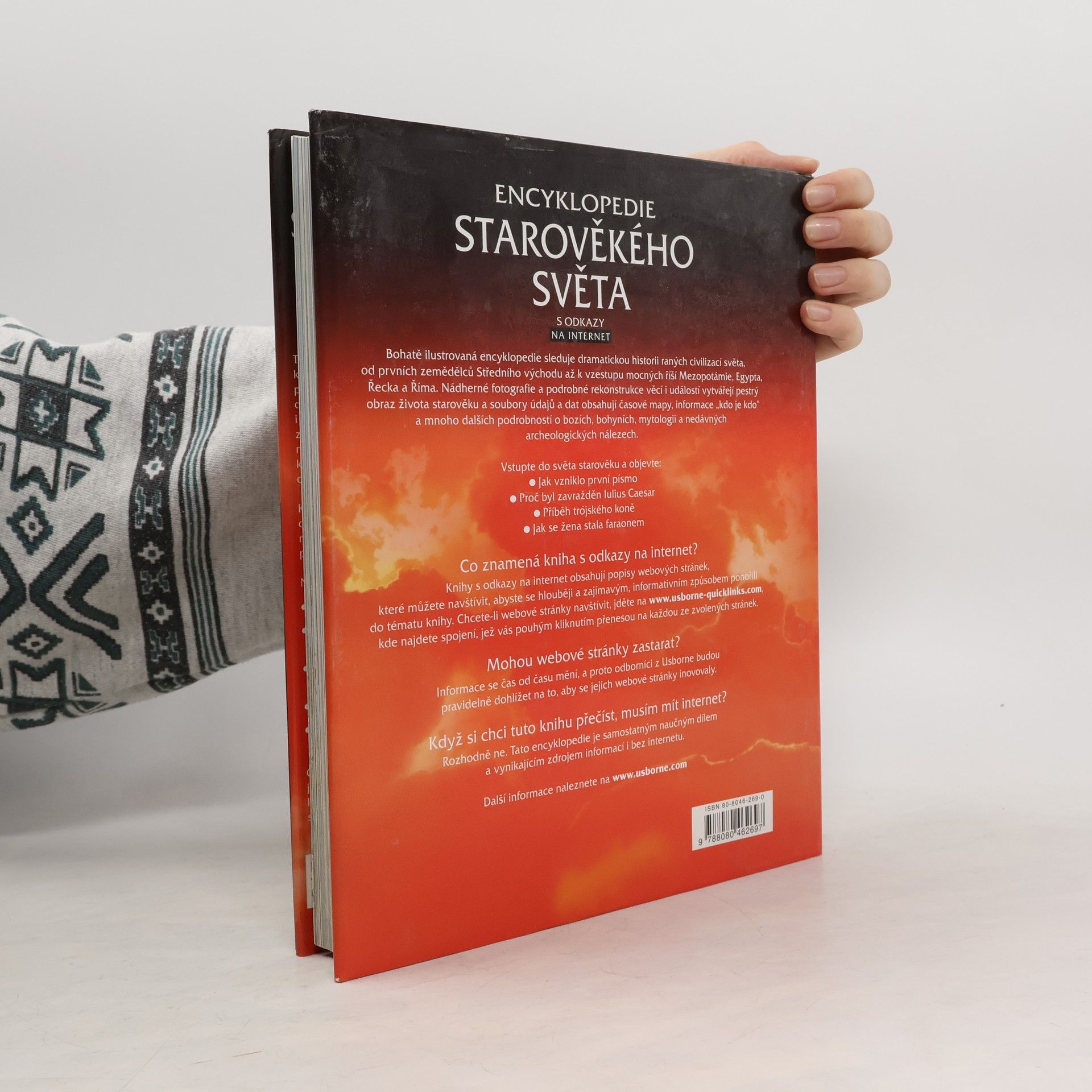 Bohatě ilustrovaná encyklopedie sleduje dramatickou historii ranných civilizací světa, od prvních zemědělců Středního východu až k vzestupu mocných říší Mezopotámie, Egypta, Řecka a Říma. Nádherné fotografie a podrobné rekonstrukce věcí a událostí vytvářejí pestrý obraz života starověku a soubory údajů a dat obsahují časové mapy, informace "kdo je kdo" a mnoho dalších podrobností o bozích, bohyních, mytologii a nedávných archeologických nálezech.