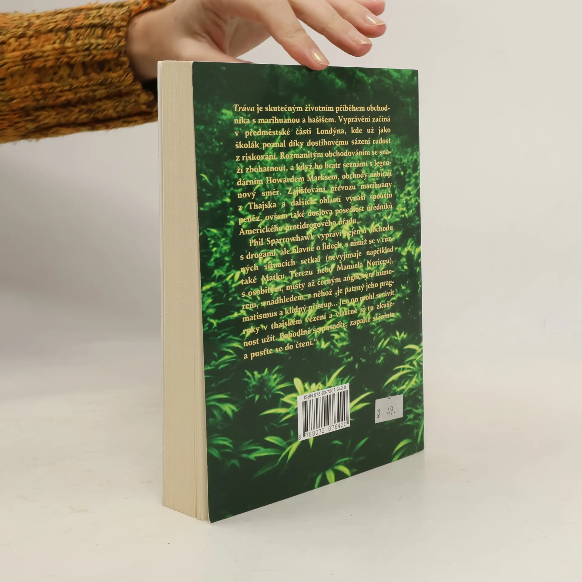 Tráva je skutečným životním příběhem obchodníka s marihuanou a hašišem. Vyprávění začíná v předměstské části Londýna, kde už jako školák poznal díky dostihovému sázení radost z riskování. Rozmanitým obchodováním se snaží zbohatnout, a když ho bratr seznámí s legendárním Howardem Marksem, obchody nabírají nový směr. Zajišťování převozu marihuany z Thajska a dalších oblastí vynáší spoustu peněz, ovšem také doslova posedlost úředníků Amerického protidrogového úřadu... Phil Sparrowhawk vypráví nejen o obchodu s drogami, ale hlavně o lidech, s nimiž se v různých situacích setkal (nevyjímaje například také Matku Terezu nebo Manuela Noriegu), s osobitým, místy až černým anglickým humorem, s nadhledem, z něhož "je patrný jeho pragmatismus a klidný přístup... Jen on mohl strávit roky v thajském vězení a vlastně si tu zkušenost užít."