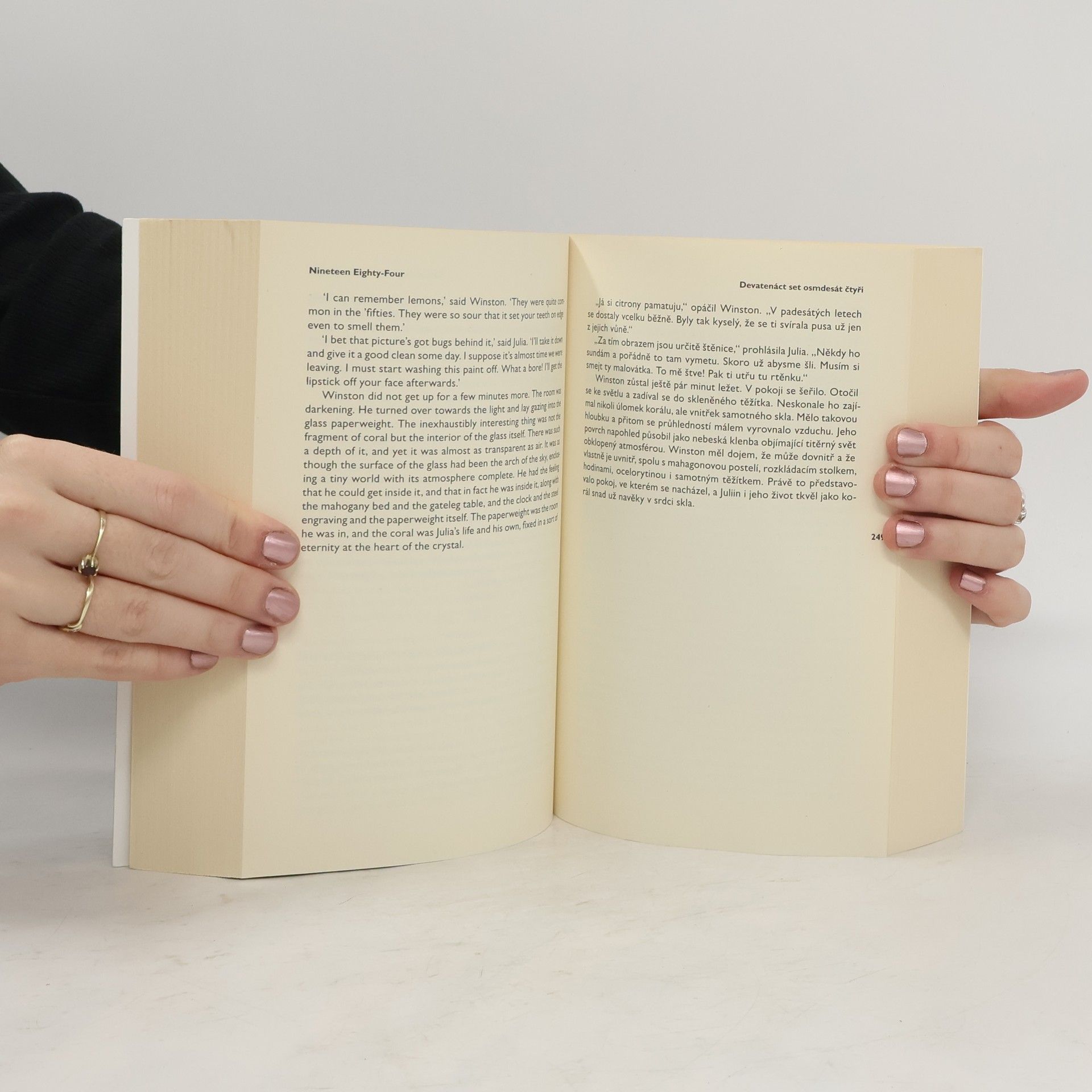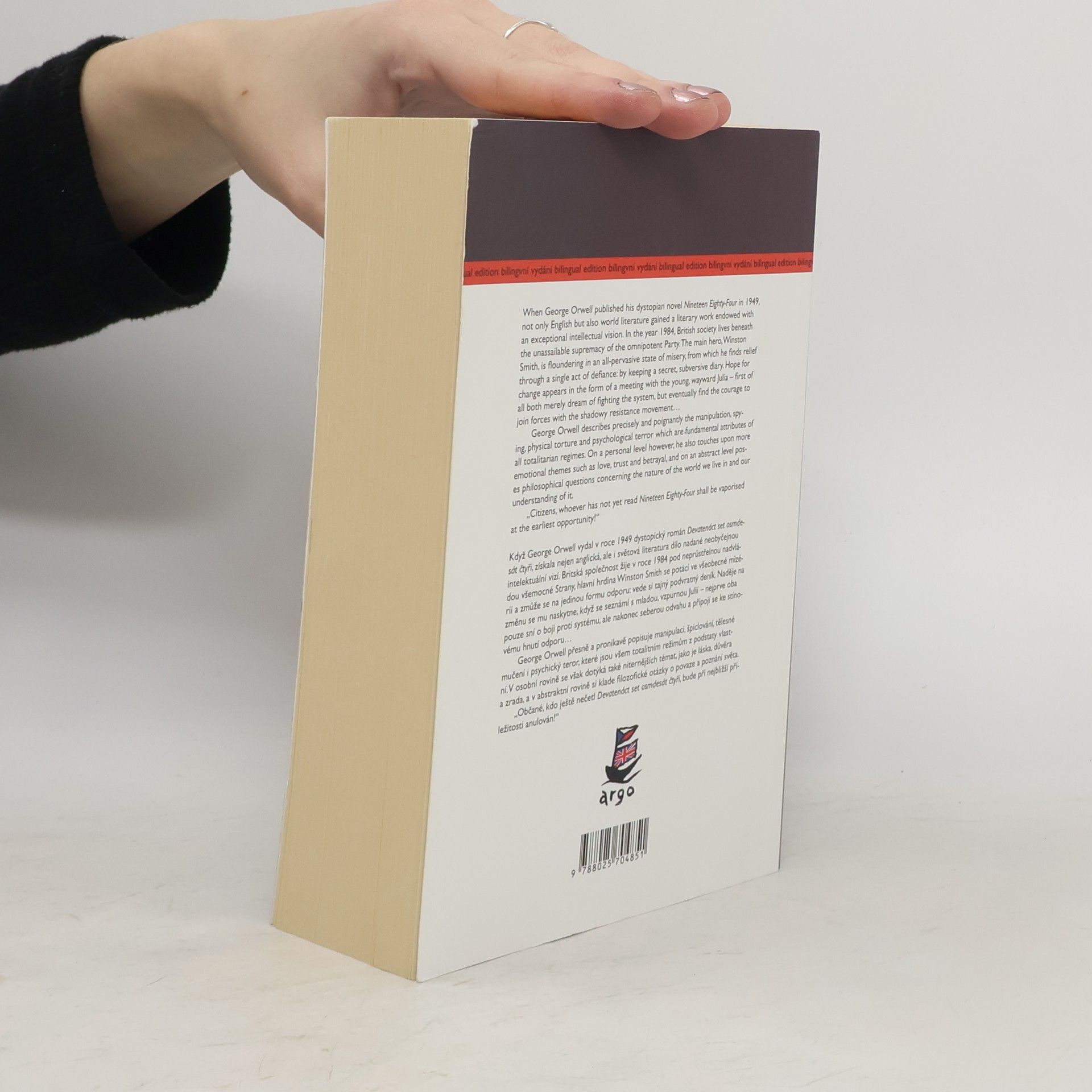 Bilingvní vydání slavného románu, který vyšel již v roce 1949 a byl inspirován stalinistickým režimem. Vize totalitní společnosti, kde není místo pro lásku, vlastní názor ani pro víru ve vlastní smysly, varuje před jakoukoli diktaturou moci. Kniha vychází v novém překladu.