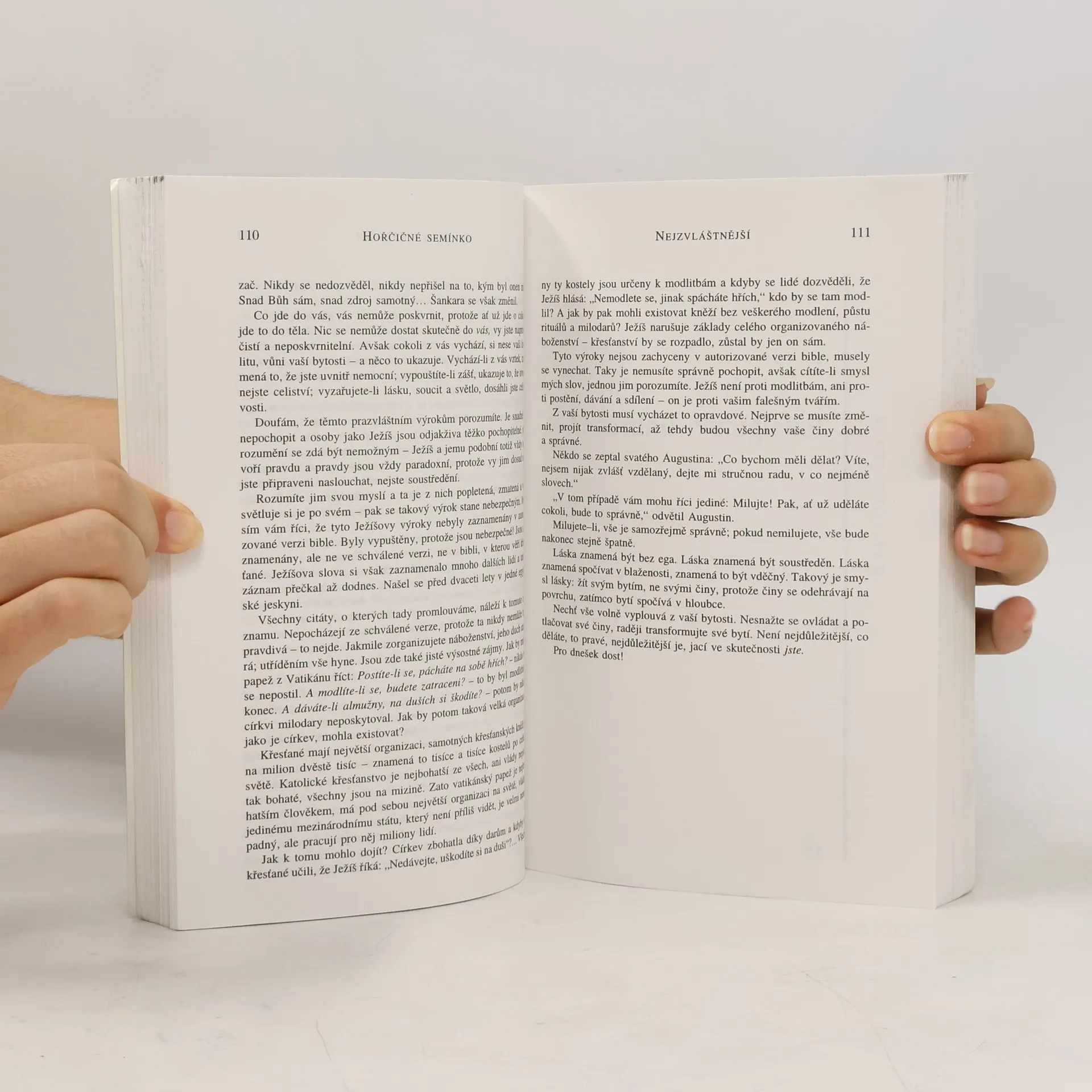 Promluvy o evangeliu podle svatého Tomáše "Království boží je jako hořčičné semínko", říká Ježíš. Semínko musí zemřít - a tak se stane stromem, Bůh se rozpustil do vesmíru, je všude, jako je semínko nyní v celém stromu. Kniha obsahuje 21 promluv nad citáty z Tomášova evangelia.