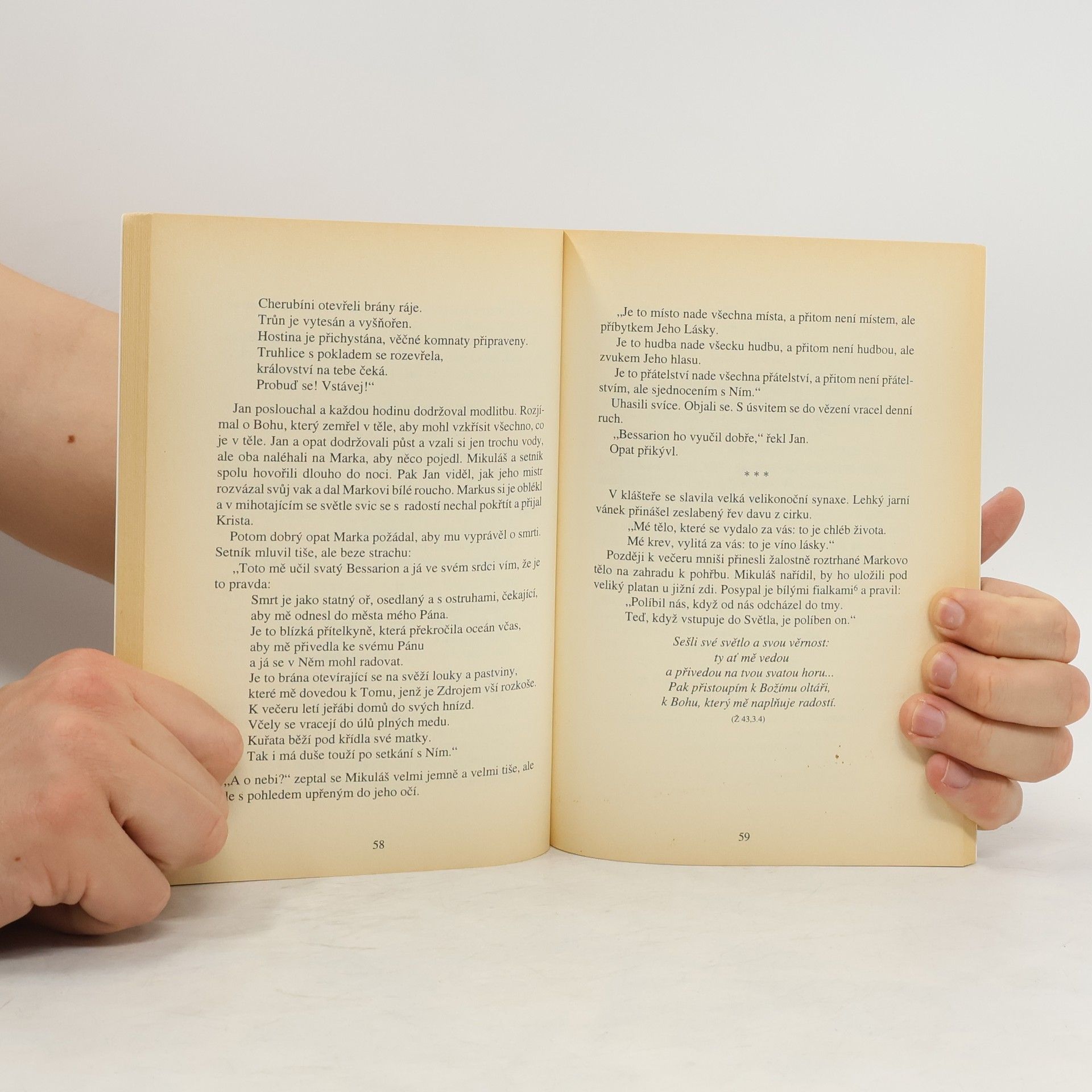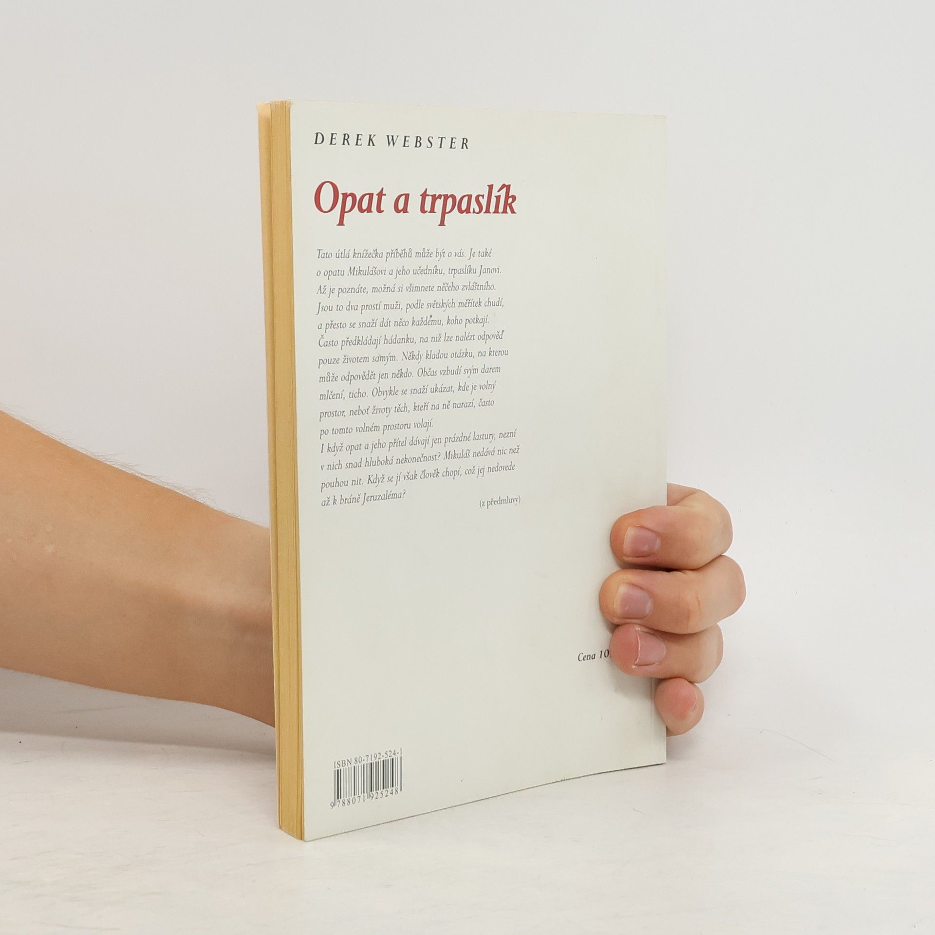 Tato kniha příběhů může být tak trochu i o vás. Je také o opatu Mikulášovi a jeho učedníku, trpaslíku Janovi. Až je poznáte, možná si všimnete něčeho zvláštního. Jsou to dva prostí muži, podle světských měřítek chudí, a přesto se snaží dát něco každému, koho potkají. Často předkládají hádanku, na niž lze nalézt odpověď pouze životem samým. Někdy kladou otázku, na kterou může odpovědět jen někdo. Občas vzbudí svým darem mlčení, ticho. Obvykle se snaží ukázat, kde je volný prostor, neboť životy těch, kteří na ně narazí, často po tomto volném prostoru volají. I když opat a jeho přítel dávají jen prázdné lastury, nezní v nich snad hluboká nekonečnost? Mikuláš nedává nic než pouhou nit. Když se jí však člověk chopí, což jej nedovede až k bráně Jeruzaléma?