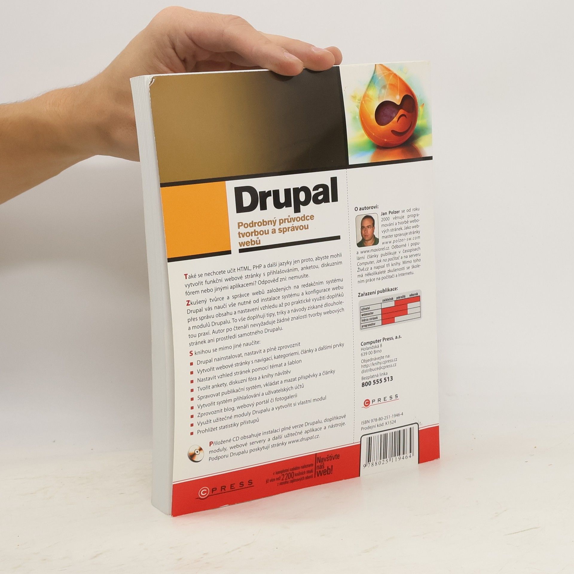 Také se nechcete učit HTML, PHP a další jazyky jen proto, abyste mohli vytvořit funkční webové stránky s přihlašováním, anketou, diskuzním fórem nebo jinými aplikacemi? Odpověď zní: nemusíte. Zkušený tvůrce a správce webů založených na redakčním systému Drupal vás naučí vše nutné od instalace systému a konfigurace webu přes správu obsahu a nastavení vzhledu až po praktické využití doplňků a modulů Drupalu. To vše doplňují tipy, triky a návody získané dlouholetou praxí. Autor po čtenáři nevyžaduje žádné znalosti tvorby webových stránek ani prostředí samotného Drupalu.