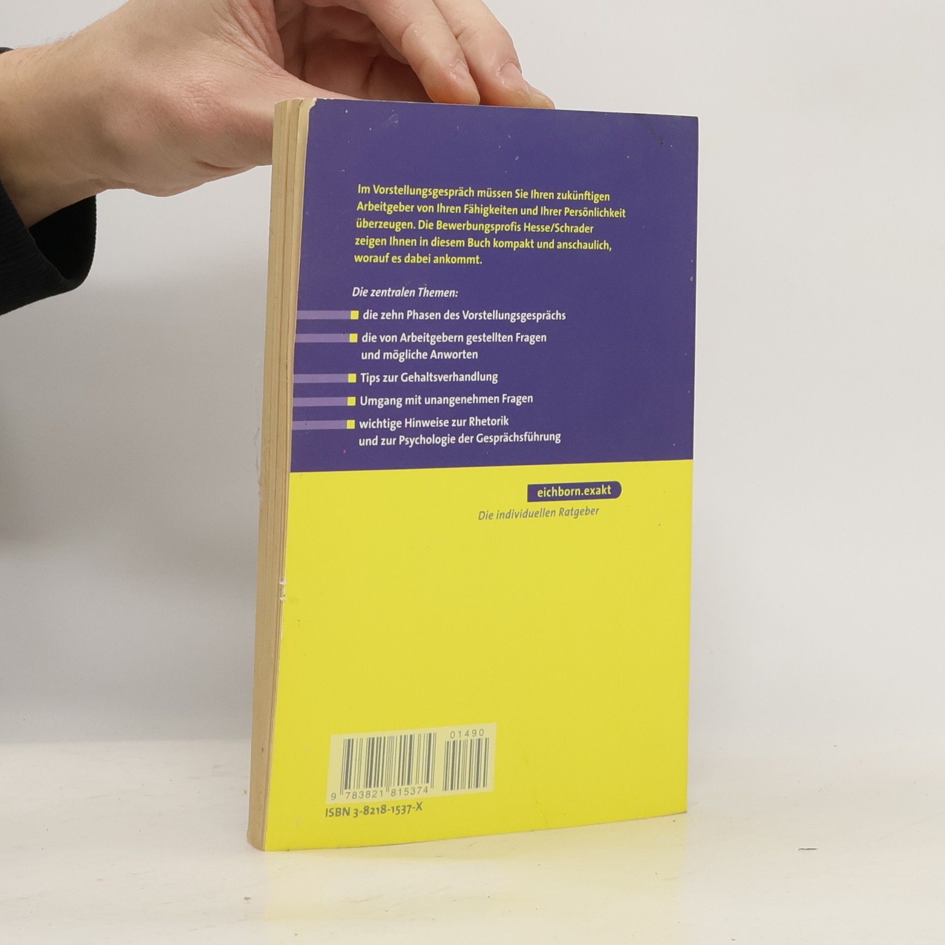 Wenn Ihre schriftliche Bewerbung überzeugt hat, werden Sie zum Vorstellungsgespräch eingeladen. Was müssen Sie dabei beachten? Welche Fragen können gestellt werden? Und wie hinterlassen Sie beim Personaler einen kompetenten und motivierten Eindruck? All das erklären Hesse/Schrader in diesem Ratgeber.Die Themen: Gesprächsablauf und Fragenrepertoire Die 10 Phasen des Vorstellungsgesprächs Typische Fragen und mögliche Antworten, z.B.: "Warum sollen wir gerade Sie einstellen?" Gesprächsführung und -psychologie, Rhetorik und Körpersprache Verhalten in Einzel- oder Gruppengesprächen und Stressinterviews Tipps zur Gehaltsverhandlung