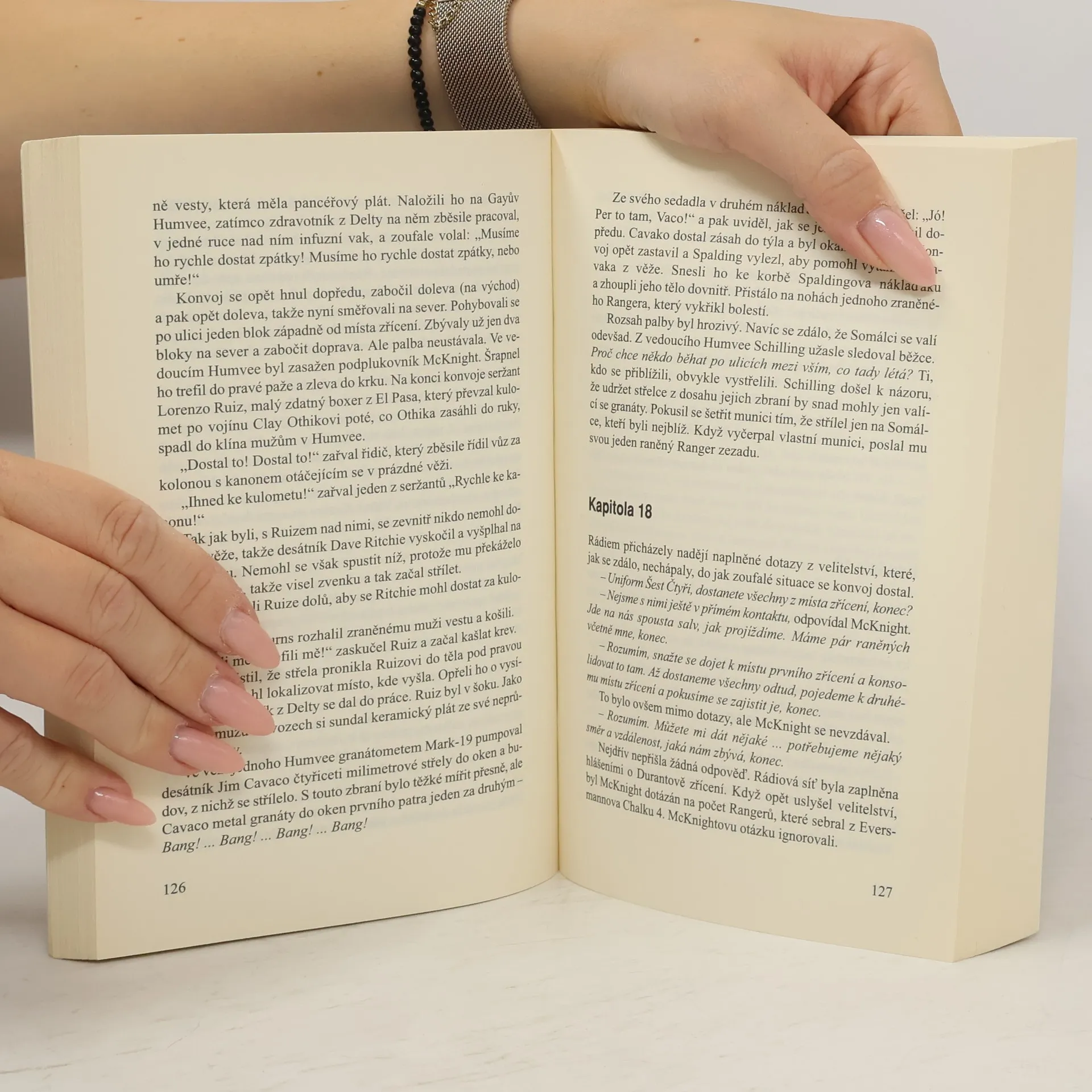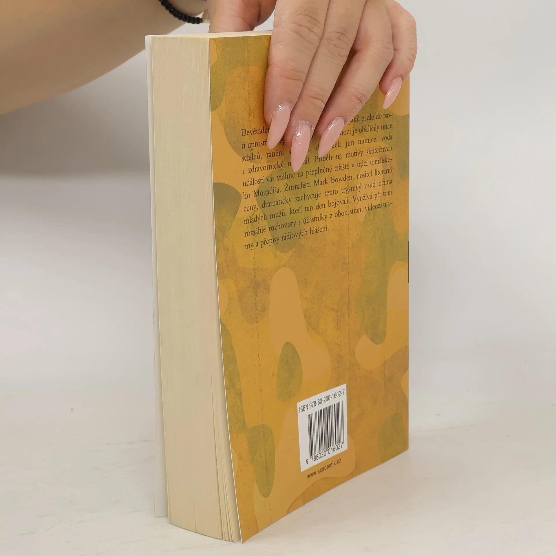 Devětadevadesát elitních amerických vojáků padlo do tisíce střelců, ranění krváceli, docházela jim munice, voda i zdravotnický materiál. Příběh na motivy skutečných událostí vás strhne do přeplněného tržiště v srdci somálského Mogadiša. Žurnalista Mark Bowden, nositel literární ceny, dramaticky zachycuje tento trýznivý osud očima mladých mužů, kteří ten den bojovali. Využívá při tom rozsáhlé rozhovory s účastníky z obou stran, videozáznamy a přepisy rádiových hlášení.