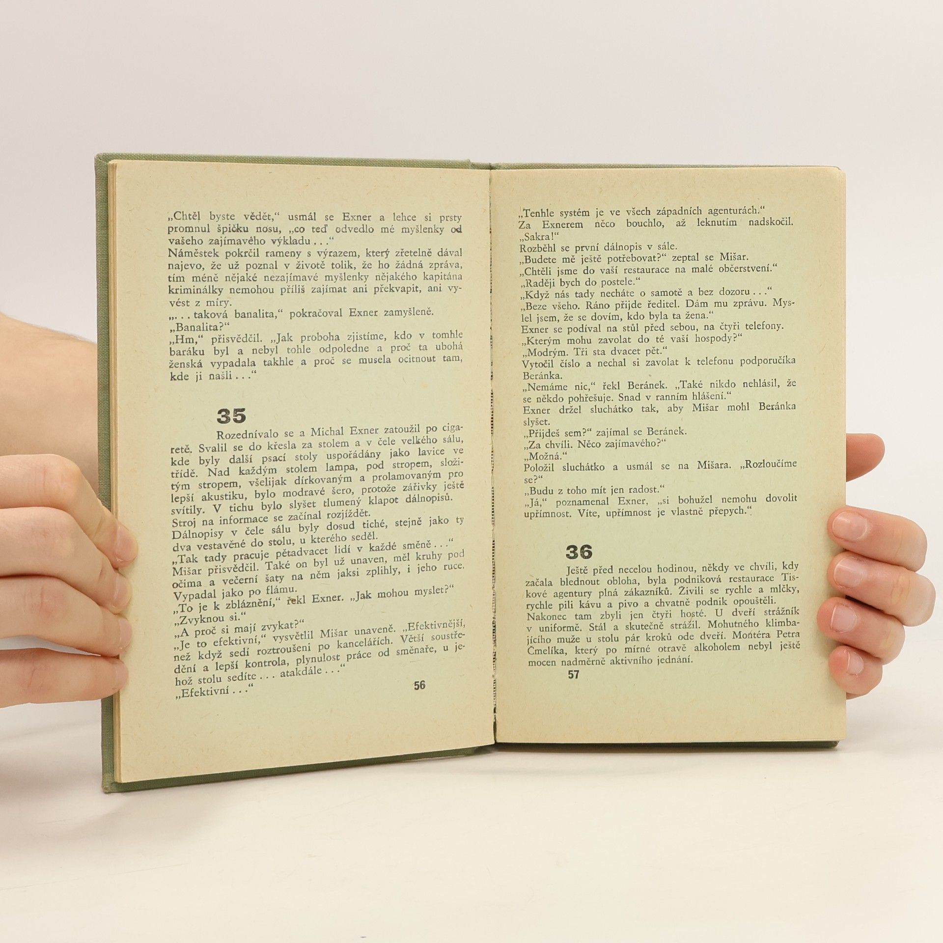 Ve foyer malého divadla bylo nalezeno příšerně zohavené mrtvé ženské tělo. Foyer oddělovaly jen zamčené obyčejné dveře od podzemních místností Tiskové agentury. A právě sousedství tiskové centrály, které dálnopisy spojovaly doslova s celým světem, vedlo kapitána Exnera a jeho tým vyšetřovatelů k odhalení vražedného motivu a nakonec i k odhalení téměř dvojnásobného vraha. Vydání 1.
