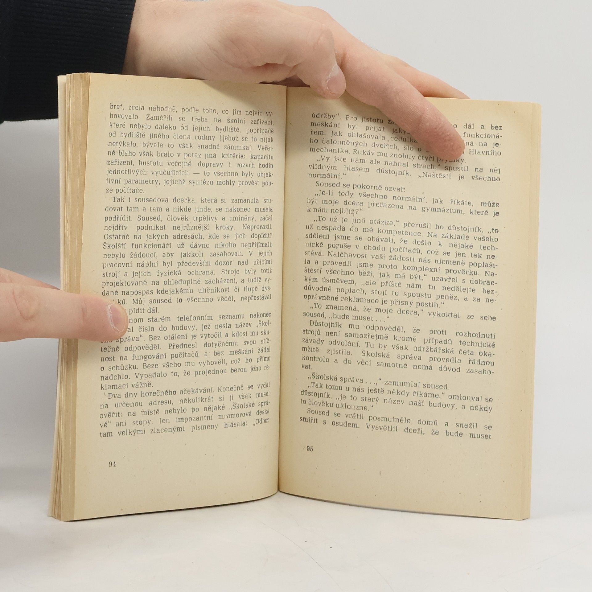 …Naproti mně v metru sedí stařík a čte si. Žádné noviny, nic takového. Knihu. Dvakrát nebo třikrát zvedne oči od čtení, duchem je zcela mimo, jeho zraky jako by něco hledaly, ale bezvýsledně. V té chvíli mě upoutají jeho tváře, uprostřed nějak příliš zarůžovělé na to, jak je jinak celý pobledlý. Několikrát se stane, že se naše pohledy setkají. Dokonce se na mě malinko pousměje, docela plaše, jen tak náznakem, jakoby nerad. Pousmání za pohled. Stanice míjejí. Budu vystupovat. Vstávám. Stařík, který teď vypadá ještě bledší a zahleděnější do sebe, pozvedá trochu hlavu a zachytí se souseda za paži. Obrací se však ke mně: " Promiňte, umírám, " říká. A skutečně, umírá…... celý text
