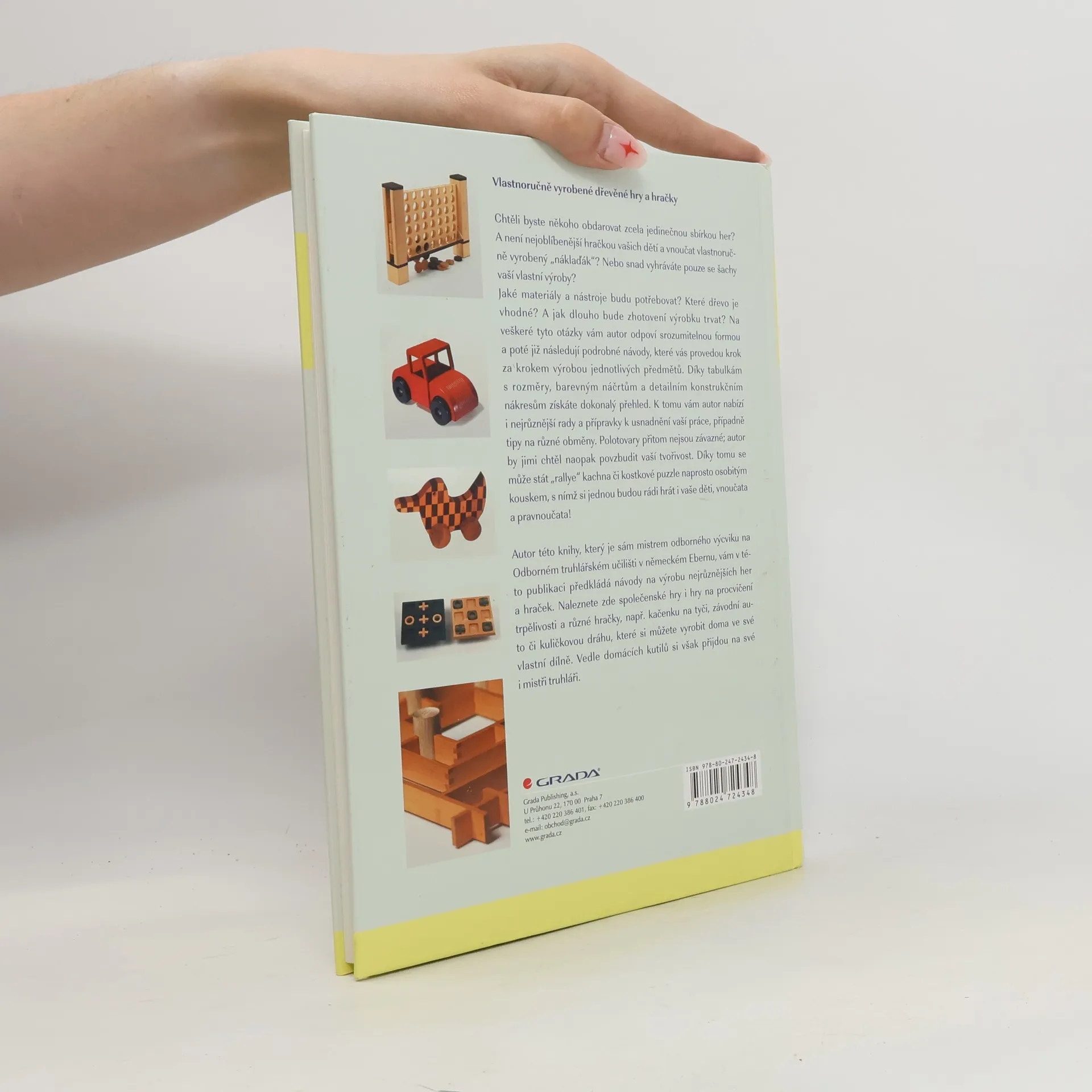 Autor vám v této publikaci předkládá návody na výrobu nejrůznějších her a hraček, které si můžete vyrobit doma ve své vlastní dílně. Vedle domácích kutilů si však přijdou na své i mistři truhláři. Jaké materiály a nástroje budu potřebovat? Které dřevo je vhodné? A jak dlouho bude zhotovení výrobku trvat? Na veškeré tyto otázky vám autor odpoví srozumitelnou formou a poté již následují podrobné návody, které vás provedou krok za krokem výrobou jednotlivých předmětů. Díky tabulkám s rozměry, barevným náčrtům a detailním konstrukčním nákresům získáte dokonalý přehled. K tomu vám autor nabízí i nejrůznější rady a přípravky k usnadnění vaší práce, případně tipy na různé obměny. Polotovary přitom nejsou závazné; autor by jimi chtěl naopak povzbudit vaší tvořivost. Díky tomu se může stát "rallye" kachna či kostkové puzzle naprosto osobitým kouskem, s nímž si jednou budou rádi hrát i vaše vnoučata a pravnoučata!