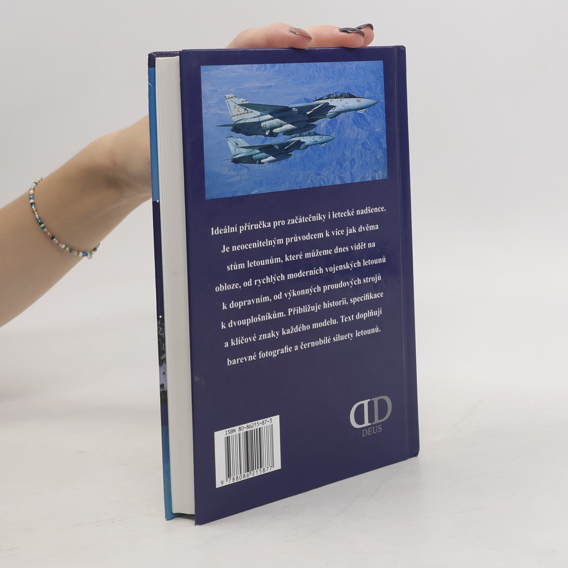 S podtitulem: Příručka pro rozpoznávání letadel. Ideální příručka pro začátečníky i letecké nadšence. Je neocenitelným průvodcem k více jak dvěma stům letounům, které můžeme dnes vidět na obloze, od rychlých moderních vojenských letounů k dopravním, od výkonných proudových strojů k dvouplošníkům. Přibližuje historii, specifikace a klíčové znaky každého modelu. Text doplňují barevné fotografie a černobílé siluety letounů.... celý text