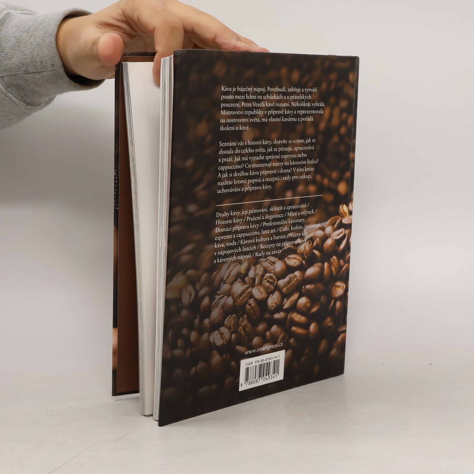 Petra Veselá Vás v knize Kniha o kávě seznámi s historií kávy, dozvíte se o tom, jak se dostala do celého světa, jak se pěstuje, zpracovává a praží. Existují různé druhy a odrůdy kávy a každá z nich má svou specifickou chuť, to, jak káva chutná, ovlivňuje také pražení, mletí, uchovávání. Další část knihy se věnuje samotným nápojům. Jak má vypadat espresso nebo cappuccino? Co znamenají názvy na kávovém lístku? A jak si skvělou kávu připravit i doma? Tipy pro nákup, uchovávání a přípravu kávy, popisy a spousta skvělých receptů na přípravu různých druhů kávy. Káva je jedním z nejoblíbenějších nápojů. Povzbudí, zahřeje a vytváří pouto mezi lidmi na schůzkách a u přátelských posezení. Nabízí se bezpočet možností, jak ji připravit, ale také jak si s ní hrát