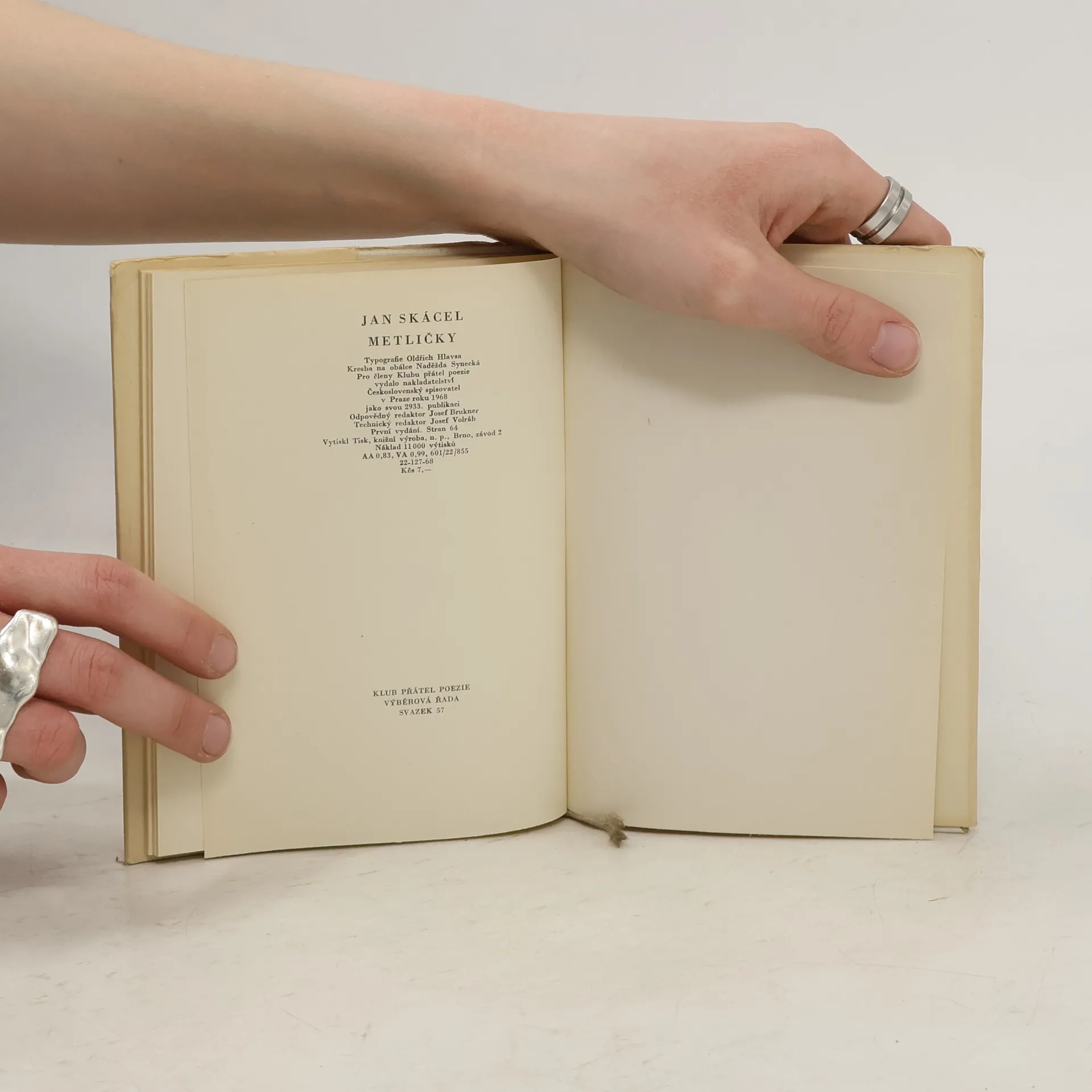 Jan Skácel (1922–1989) básník, redaktor brněnského deníku Rovnost, šéfredaktor časopisu Host do domu a překladatel se znovu připomíná, a to sbírkou Metličky z roku 1968. V této sbírce, stejně jako v předešlé Smuténka, upouští básník od volného verše, který v jeho díle převládá, avolí tradiční strofickou a veršovou formu. Básněmi charakteristickými úsporným výrazem a působivou atmosférou proniká vědomí hluboké mravnosti a až existenciální úzkost.
