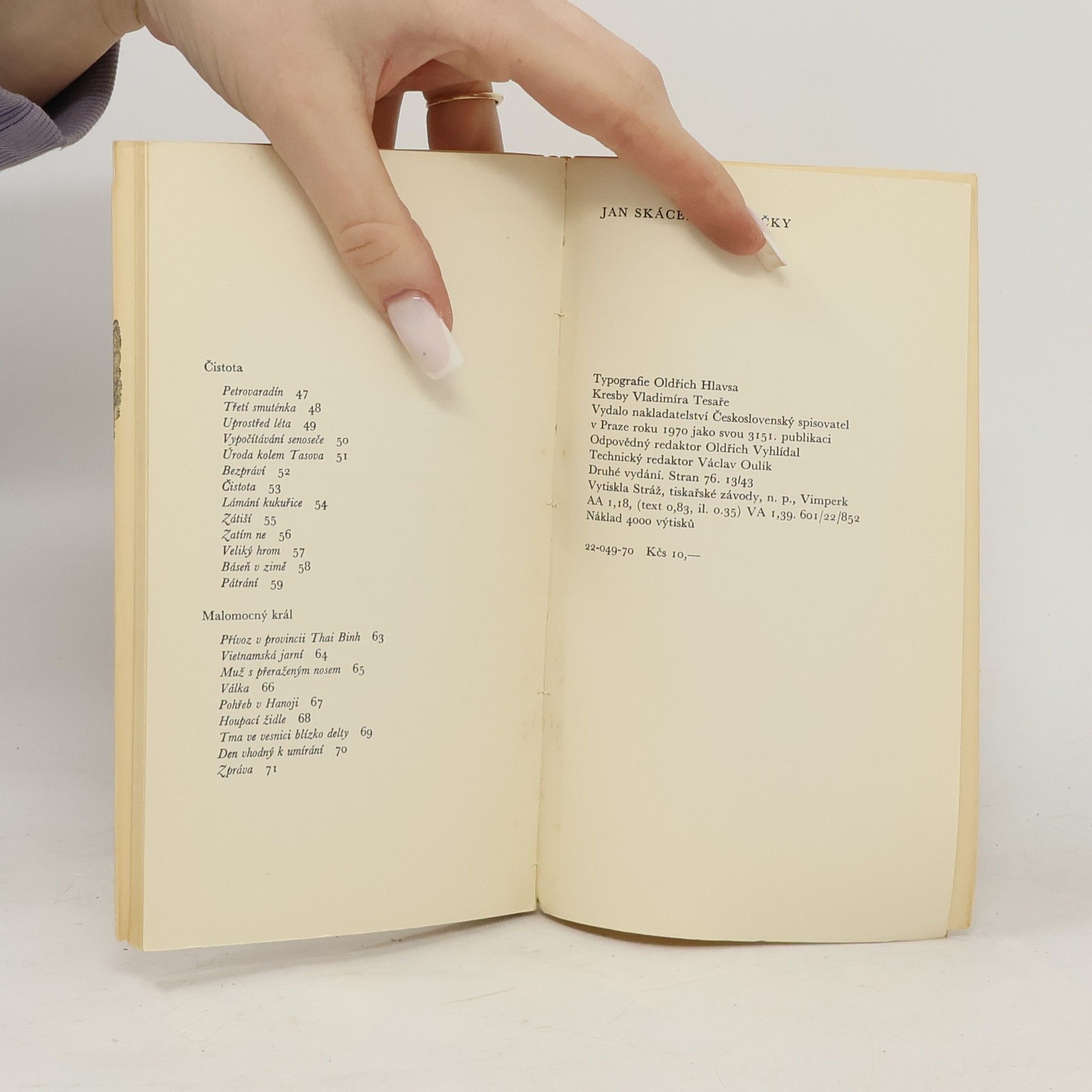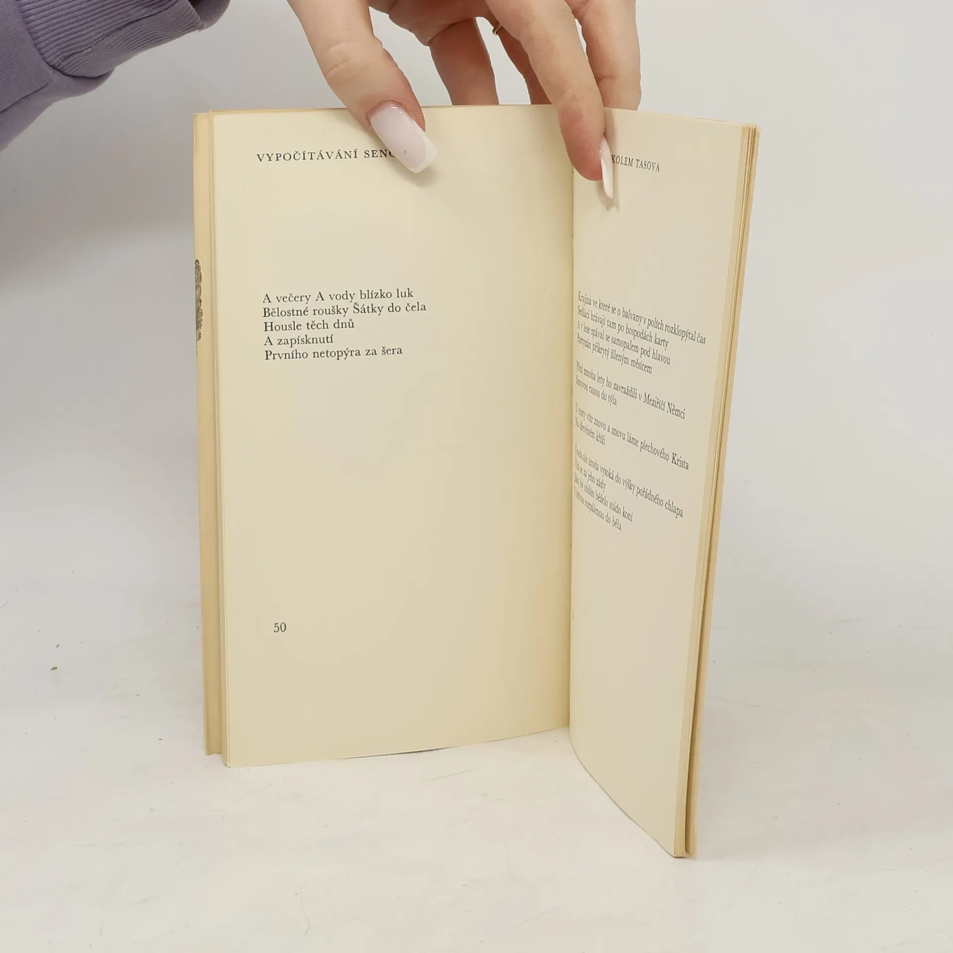 Druhé vydání sbírky moravského básníka 2. poloviny 20. století, který oslovuje i dnešní čtenáře poezie. V této sbírce upouští od volného verše, který v jeho díle převládá, a volí tradiční strofickou a veršovou formu.