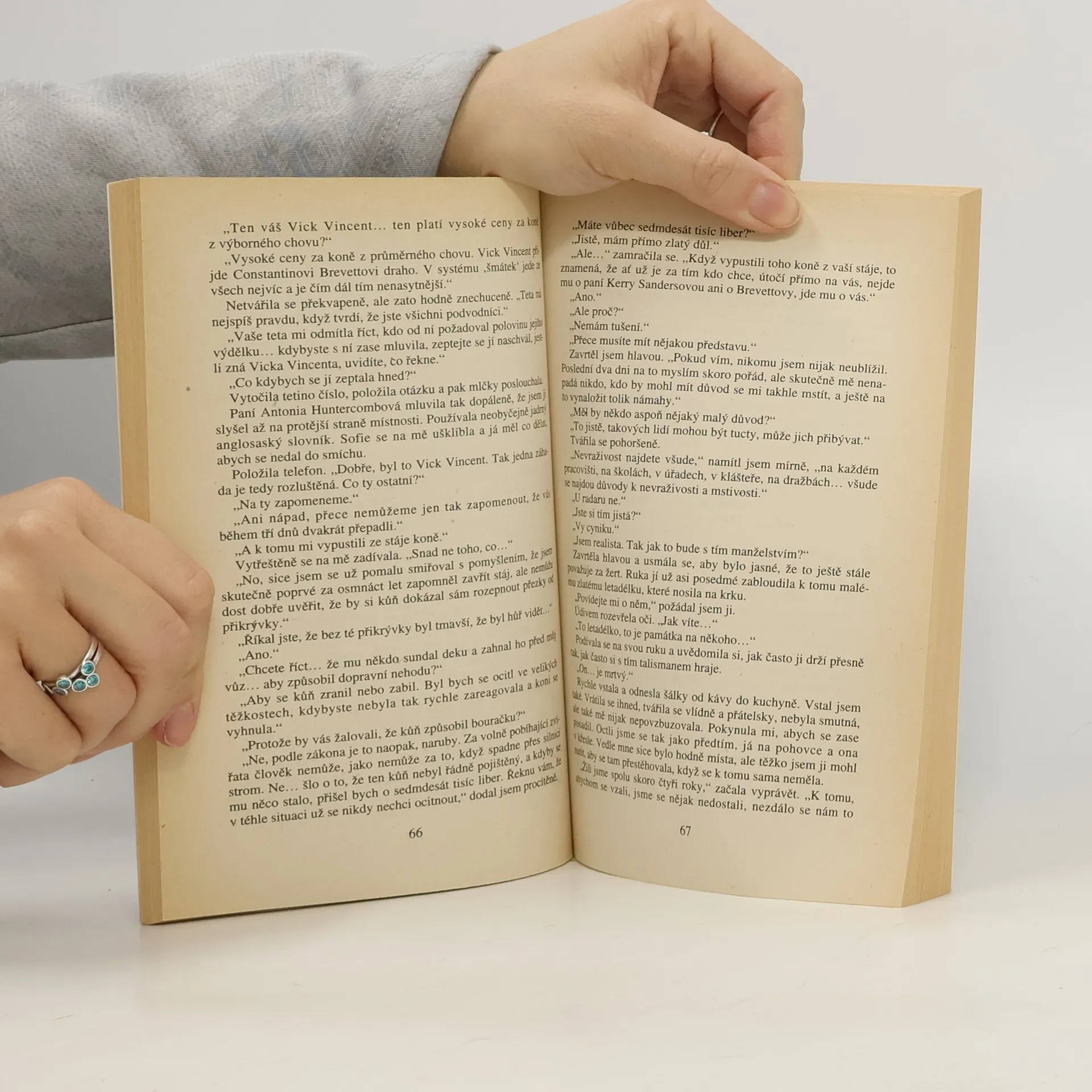 Atmosféra kolem Jonase Derehama, bývalého překážkové jezdce a nyní úspěšného a zásadového obchodníka s dostihovými koňmi, začíná nebezpečně houstnout. Výhrůžky jemu adresované už přesáhly únosnou mez a pokud má ve zdraví přežít, musí sám a co nejdřív odhalit člověka, který mu usiluje o život a stojí za nekalými praktikami při dražbách.