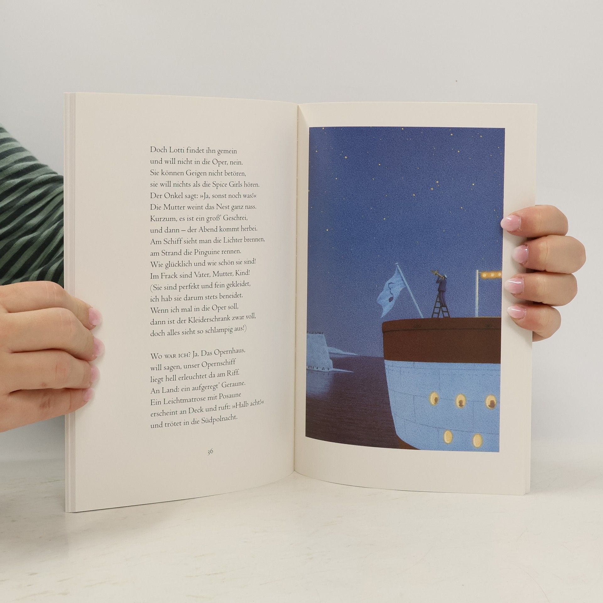 Eines der ewiges Rätsel ist nun endlich gelöst! Nämlich, warum die Natur die Pinguine mit ihrer höchst eleganten Abendgarderobe ausgestattet hat. Natürlich, weil Abertausende von Pinguinen stets gerüstet sein wollen für das Opernschiff, das unberechenbarerweise irgendwann so alle paar Jahre mal vorbeischaut und zu einer Vorstellung an Bord einlädt. Diesmal wird 'La Traviata' gegeben, dargeboten von den drei Tenören. Und weil Pinguine in der tiefe ihres Herzens ganz warm und weich und sentimental sind, gibt's am Ende der traurigen Geschichte genauso viele Tränen wie Beifallsstürme, und alle schwimmen glücklich, bewegt, guter Dinge und - einige sogar frisch verliebt - zurück an Land. Danach beginnt erneut das lange Warten, auf die nächste Oper. Denn 'Aida' - 'Aida' wär am Südpol auch eine schöne Sache!