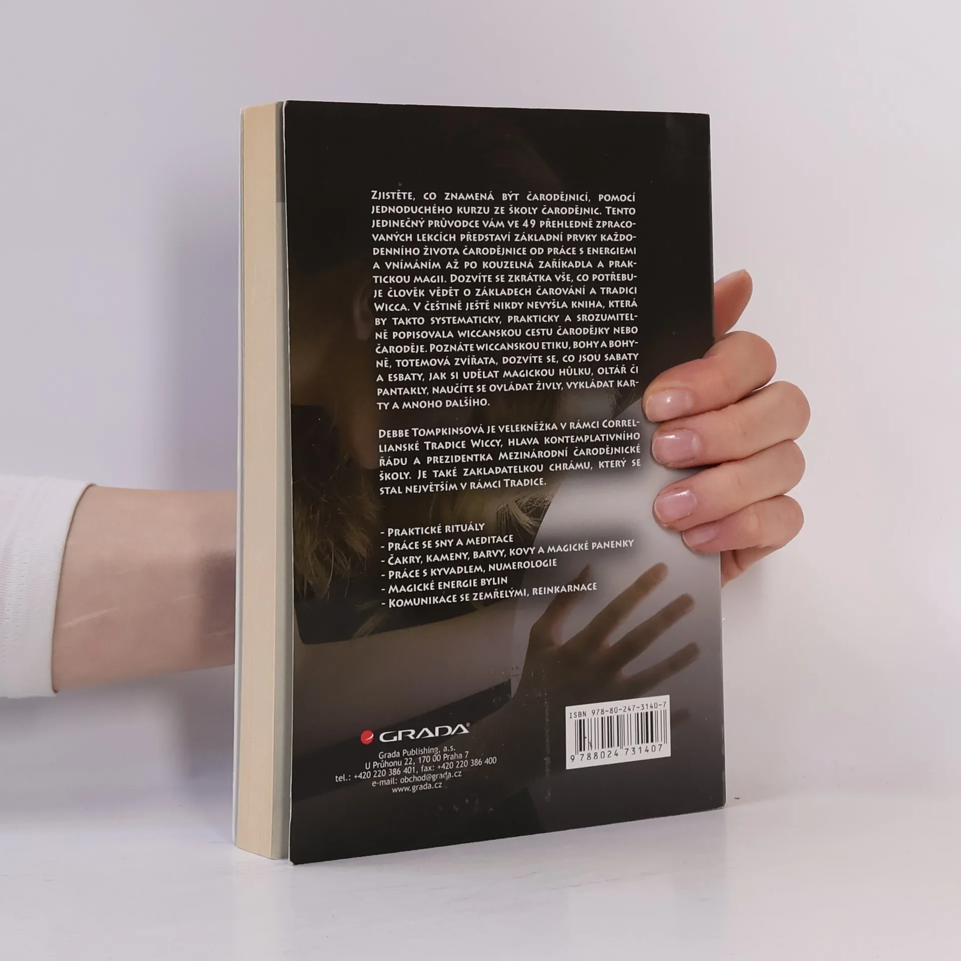 Podtitul: Magie podle wiccanské tradice Tento jedinečný průvodce vám ve 49 přehledně zpracovaných lekcích představí základní prvky každodenního života čarodějnice od práce s energiemi a vnímáním až po kouzelná zaříkadla a praktickou magii. Dozvíte se zkrátka vše, co potřebuje člověk vědět o základech čarování a tradici Wicca. V češtině ještě nikdy nevyšla kniha, která by takto systematicky, prakticky a srozumitelně popisovala wiccanskou cestu čarodějky nebo čaroděje. Poznáte wiccanskou etiku, bohy a bohyně, totemová zvířata, dozvíte se, co jsou sabaty a esbaty, jak si udělat magickou hůlku, oltář či pantakly, naučíte se ovládat živly, vykládat karty a mnoho dalšího.