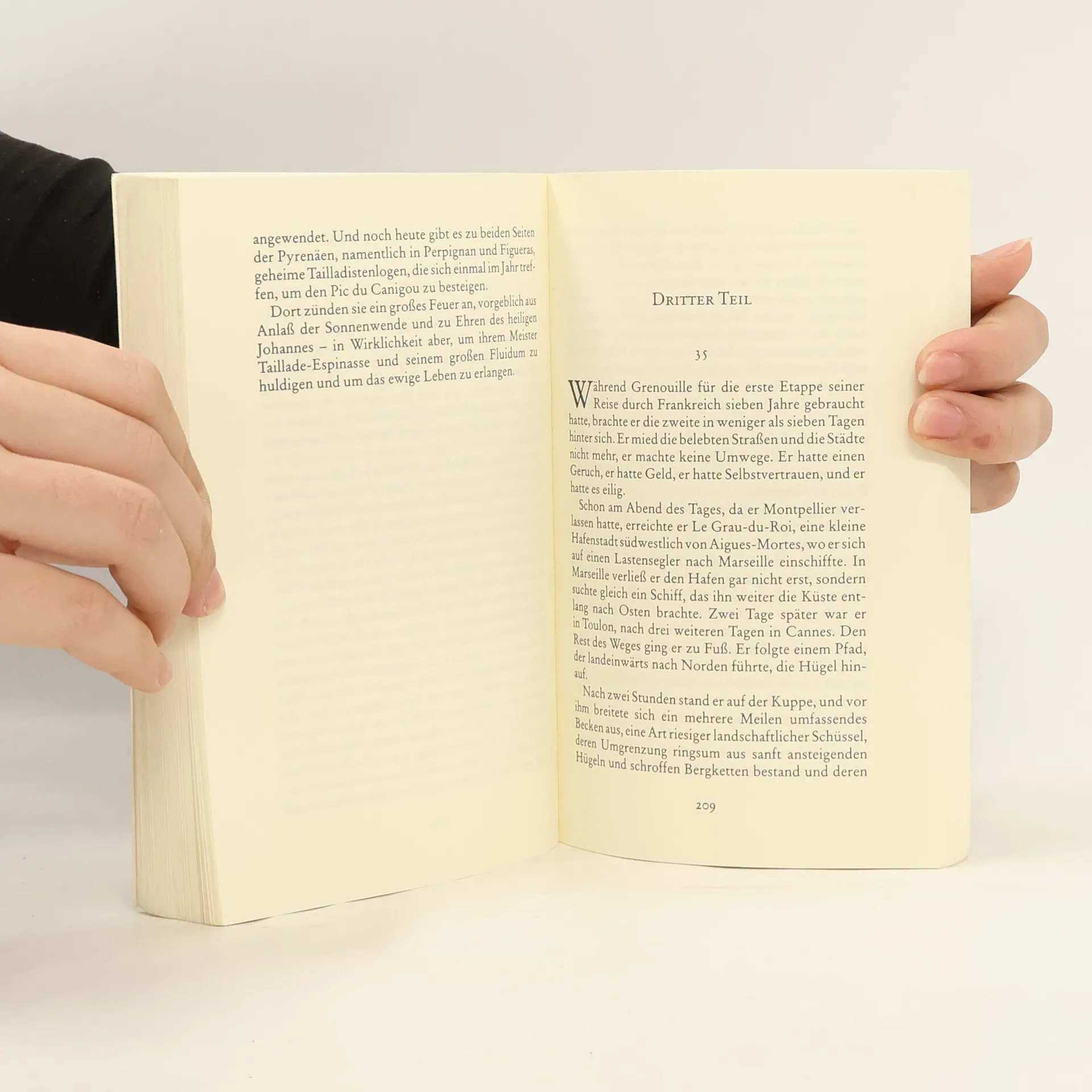 Von Jean-Baptiste Grenouille, dem finsteren Helden, sei nur verraten, daß er 1738 in Paris, in einer stinkigen Fischbude, geboren wird. Die Ammen, denen das Kerlchen an die Brust gelegt wird, halten es nur ein paar Tage mit ihm aus: Er sei zu gierig, außerdem vom Teufel besessen, wofür es untrügliche Indizien gebe: den fehlenden Duft, den unverwechselbaren Geruch, den Säuglinge auszuströmen pflegen.