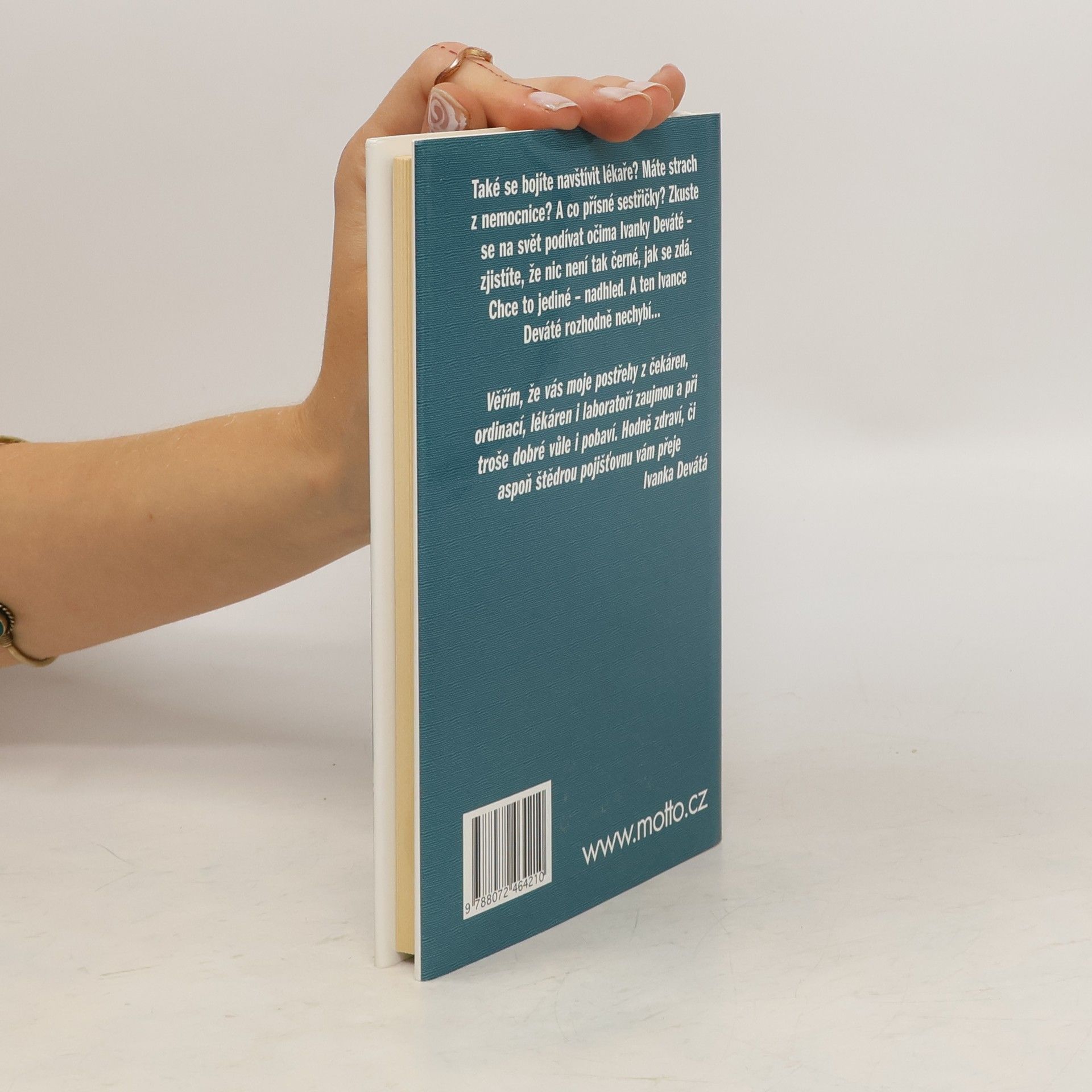 Humorné příběhy a postřehy z nemocničního prostředí Také se bojíte navštívit lékaře? Máte strach z nemocnice? A co přísné sestřičky? Zkuste se na svět podívat očima Ivanky Deváté - zjistíte, že nic není tak černé, jak se na první pohled zdá.