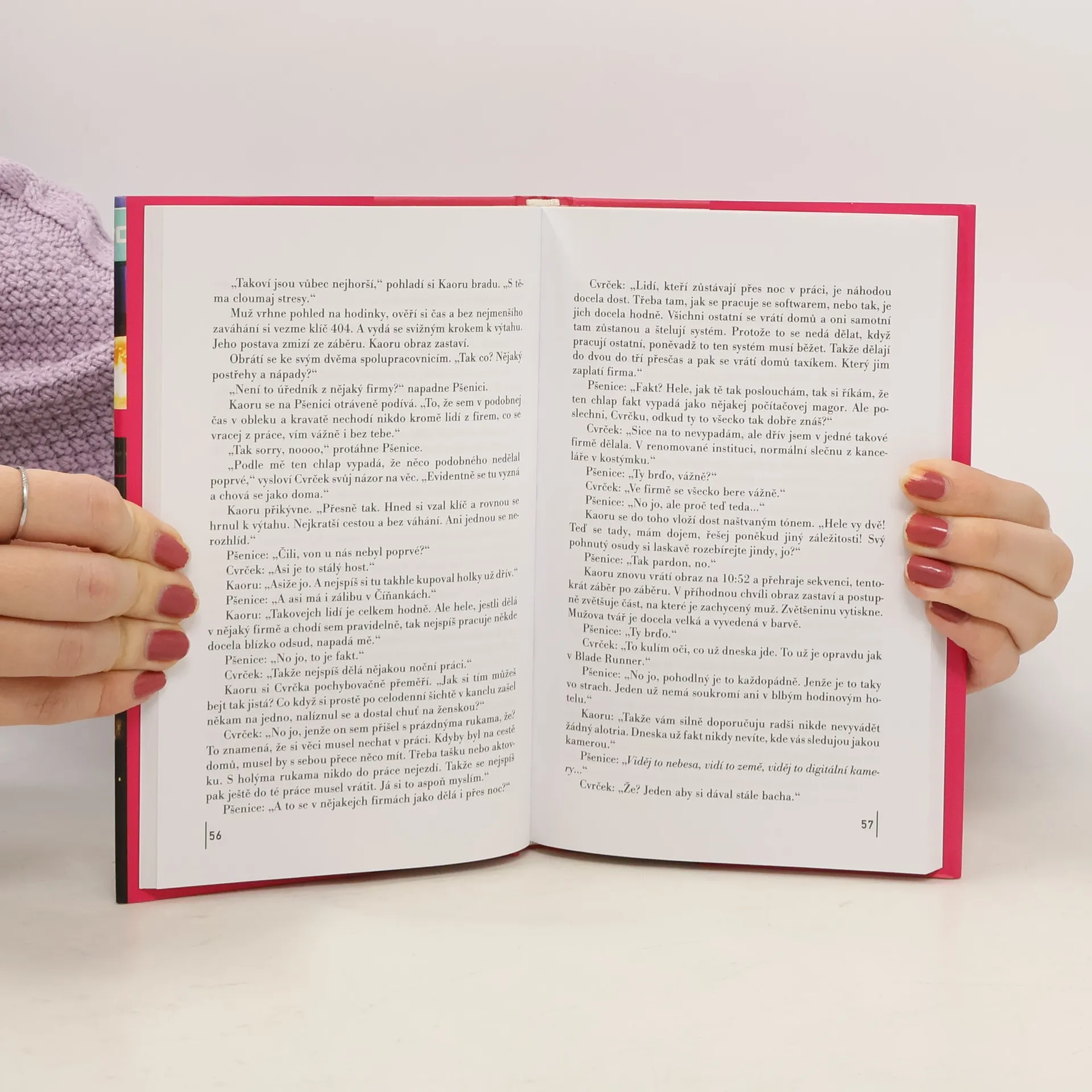Před očima nám leží město… Jen za docela malou chvilku se má změnit datum. Je těsně před půlnocí. Chvíle mezi dvěma dny. Mezidní. Pozorujeme město jako obrovské zvíře. Pozorujeme Mari, sedí v restauraci a čte si. Pozorujeme její krásnou sestru Eri, jak spí v nekonečném spánku… Příběh ze současného Tokia se odehrává, jak už název napovídá, po setmění, během jediné noci. Kapitoly jsou napsány stylem filmového scénáře a u každé z nich je uveden přesný časový údaj. Dějová linie je pro autora typická, střídají se tu dva paralelní, navzájem se prolínající příběhy. Nezvyklí jsou tentokrát hrdinové: žádný slušně situovaný muž v nejlepších letech, ani outsider, žádná ich-forma, ale dvě sestry a vševědoucí vypravěč první osoby množného čísla. Devatenáctiletá Mari, která umí čínsky, je kontaktována manažerkou hodinového hotelu, aby jí pomohla vyřešit případ brutálně zbité čínské prostitutky. Její sestra se vlivem tajemných sil ocitla v jakémsi nejasném a nebezpečném snu, v ohraničeném anonymním prostoru. V průběhu noci, ještě než přichází ráno, se věci dávají do pohybu, mění svůj charakter a skupenství. Něco se v hrdinech mění, něco se mění v nás... Afterdark, autorův čtvrtý román vycházející v češtině, nabízí napínavý, psychologicky i detektivně laděný příběh s fantaskními a hororovými prvky. A také dynamický styl sekvence, kdy realitu vnímáme očima kamery. Murakami decentně a úsporně rozvíjí čtenářovo očekávání.