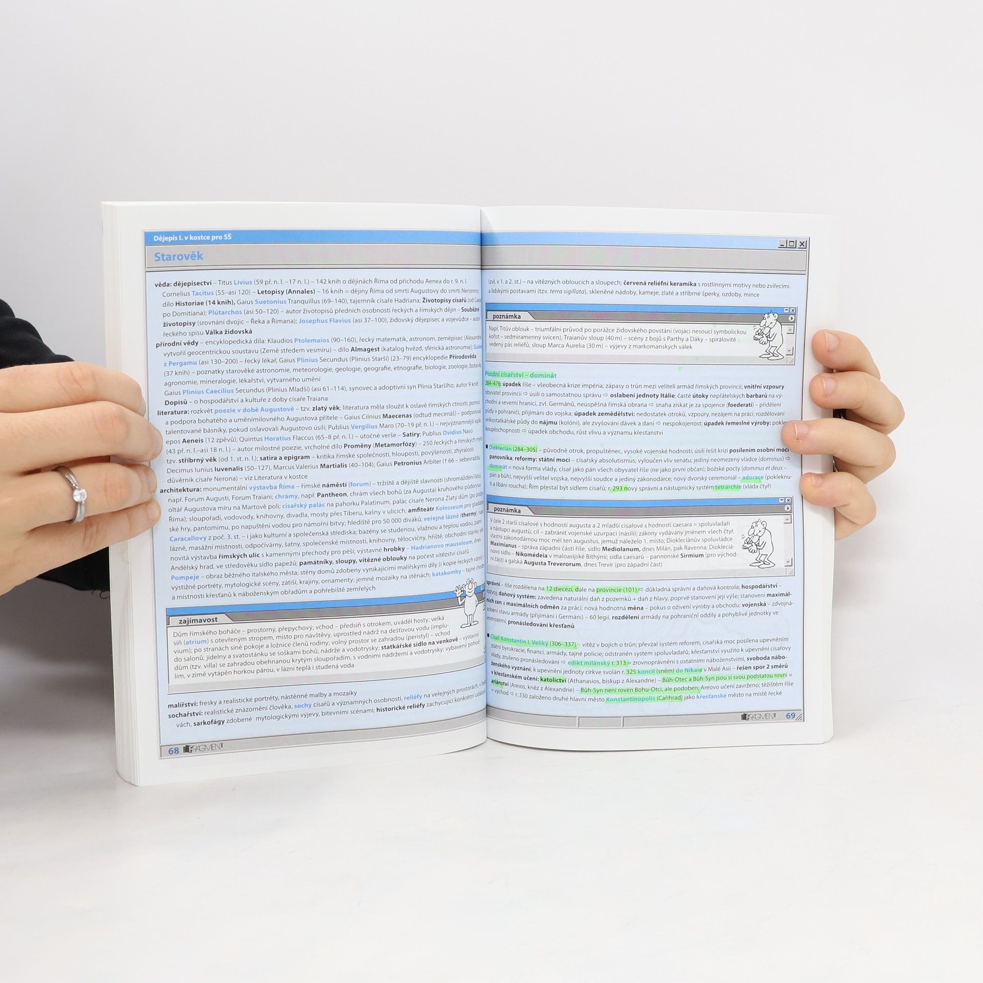 Přepracované a aktualizované vydání populární doplňkové učebnice pro střední školy v novém praktickém formátu. Dvoudílná učebnice shrnuje přehledně to podstatné, co student střední školy potřebuje nejen při přípravě k maturitě, ale během celého studia na střední škole. 1. díl je věnován období od pravěku po středověk.
