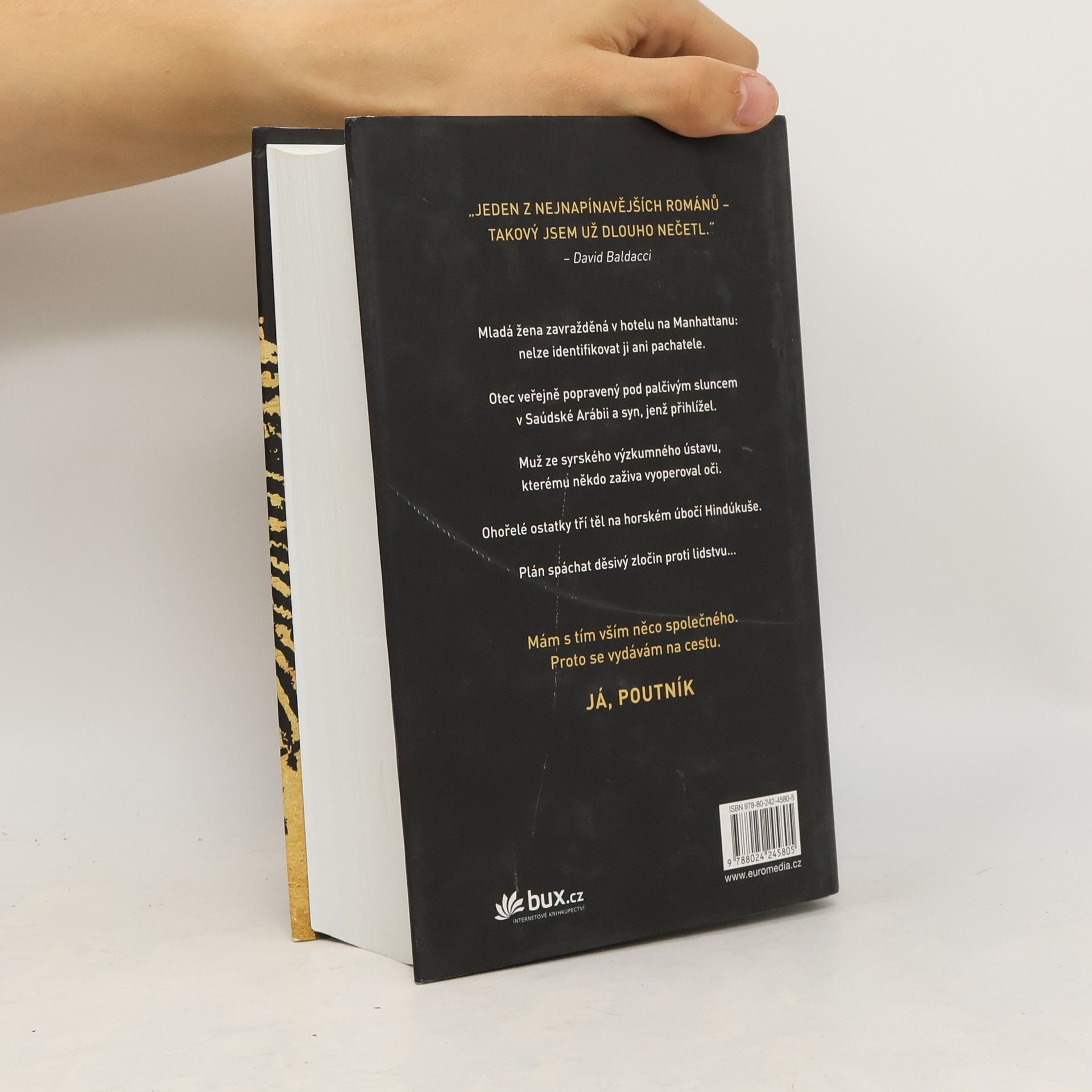 Mladá žena zavražděná v hotelu na Manhattanu – nelze identifikovat ji ani pachatele. Otec veřejně sťatý pod palčivým sluncem v Saúdské Arábii a syn, jenž přihlížel. Muž ze syrského výzkumného ústavu, kterému někdo zaživa vyoperoval oči. Ohořelé ostatky tří těl na horském úbočí Hindúkuše. Plán spáchat děsivý zločin proti lidstvu… Mám s tím vším něco společného. Proto se vydávám na cestu. Já, Poutník. „Jediný thriller, který si letos musíte přečíst.“ – The Guardian