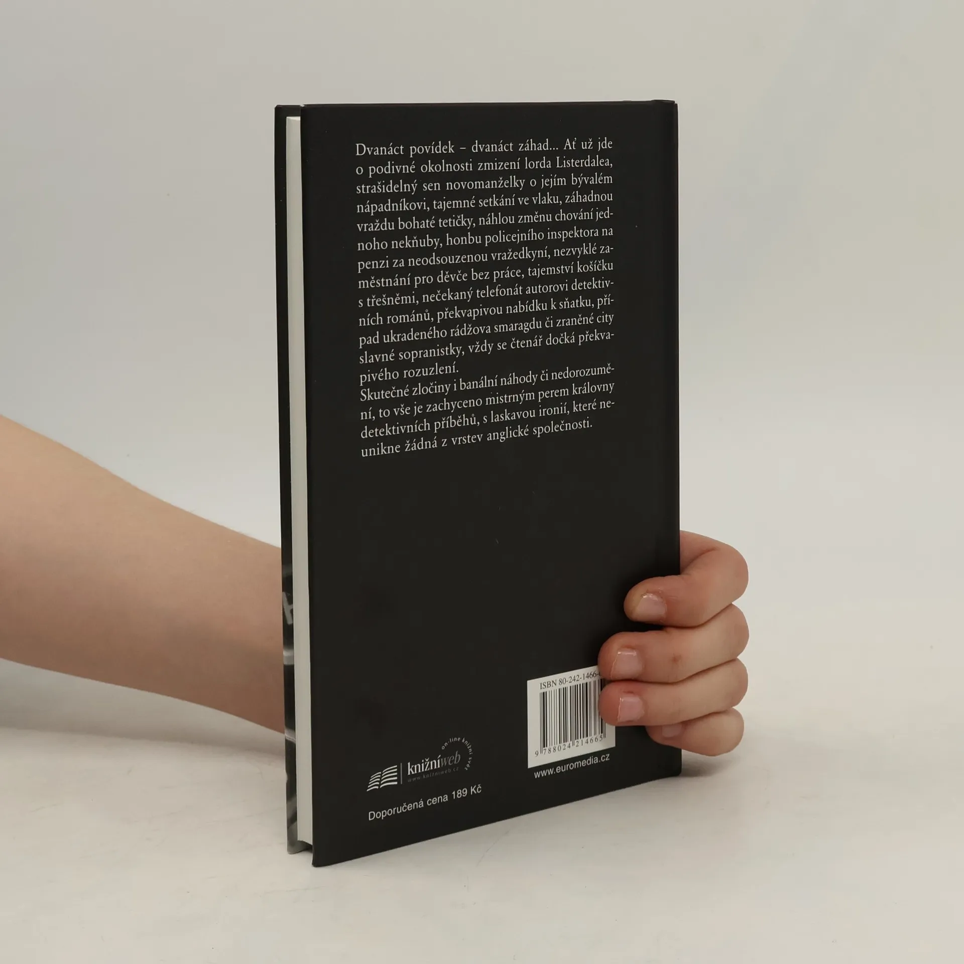 Dvanáct povídek – dvanáct záhad… Ať už jde o podivné okolnosti zmizení lorda Listerdalea, strašidelný sen novomanželky o jejím bývalém nápadníkovi, tajemné setkání ve vlaku, záhadnou vraždu bohaté tetičky, náhlou změnu chování jednoho nekňuby, honbu policejního inspektora na penzi za neodsouzenou vražedkyní, nezvyklé zaměstnání pro děvče bez práce, tajemství košíčku s třešněmi, záhadný telefonát autorovi detektivních románů, překvapivou nabídku k sňatku, případ ukradeného rádžova smaragdu nebo zraněné city slavné sopranistky, vždy se čtenář dočká překvapivého rozuzlení... Skutečné zločiny i banální náhody či nedorozumění – vše je zachyceno mistrným perem královny detektivních příběhů, s laskavou ironií, které neunikne žádná z vrstev anglické společnosti.... celý text