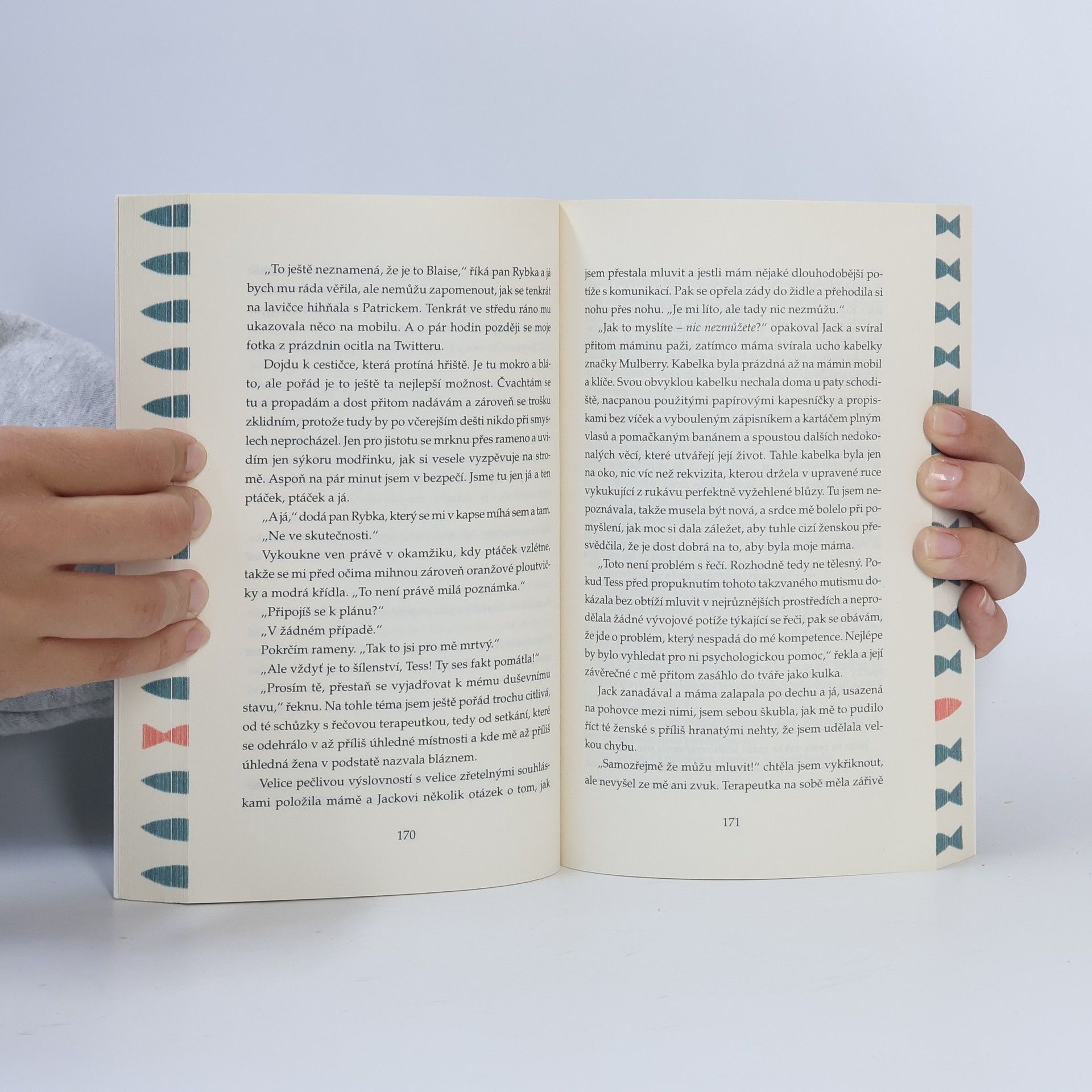 Tess původně neměla v úmyslu úplně přestat mluvit. Jenom jí došla řeč, a kdo by se jí taky mohl divit? Když v patnácti letech zjistíte, že vám celý život lhali a váš táta ve skutečnosti není ten, kdo vás vychoval, ale úplně neznámý cizinec, může se stát, že těžko hledáte slova, kterými své pocity vyjádřit. Po počátečním šoku Tess rychle přijde na spoustu slov, která by mohla říct rodičům, babičce, nejlepší kamarádce, spolužákům, kteří ji šikanují, učiteli matematiky, kterého by za tátu brala hned, i nejhezčímu klukovi v severní Anglii – ale jednodušší je nakonec zůstat zticha a během pátrání po pravdě si povídat jen s panem Rybkou...