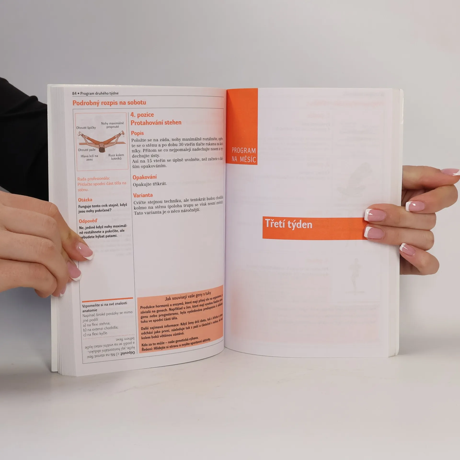Časově nenáročný program 15 minut denně se strečinkem Během času ztrácí tělo pružnost, záda tuhnou a hrbí se vlivem každodenního sedavého zaměstnání. Autorka bohatě ilustrované knihy představuje úspěšný a vyzkoušený program patnáctiminutových cvičení na každý den po šest dní v týdnu, rozvržený na dobu jednoho měsíce. Program, založený na strečinku, je zvlášť zaměřen proti deformacím a tuhnutí svalů oblasti zad a bolestem páteře, pomáhá však také k udržování ohebnosti svalů, zlepšuje funkci svalů dýchacího ústrojí a přispívá k udržování tělesné kondice a dobré postavy. Jeho výhodou je, že cvičení lze provádět v domácím prostředí, knihu však využijí k doplňkovému domácímu cvičení i ti, kdo navštěvují fitcentra. Kniha poslouží všem, kdo si chtějí s minimálním časovým zatížením zachovat dobrou fyzickou kondici a tělesný vzhled a oddálit účinky stárnutí.