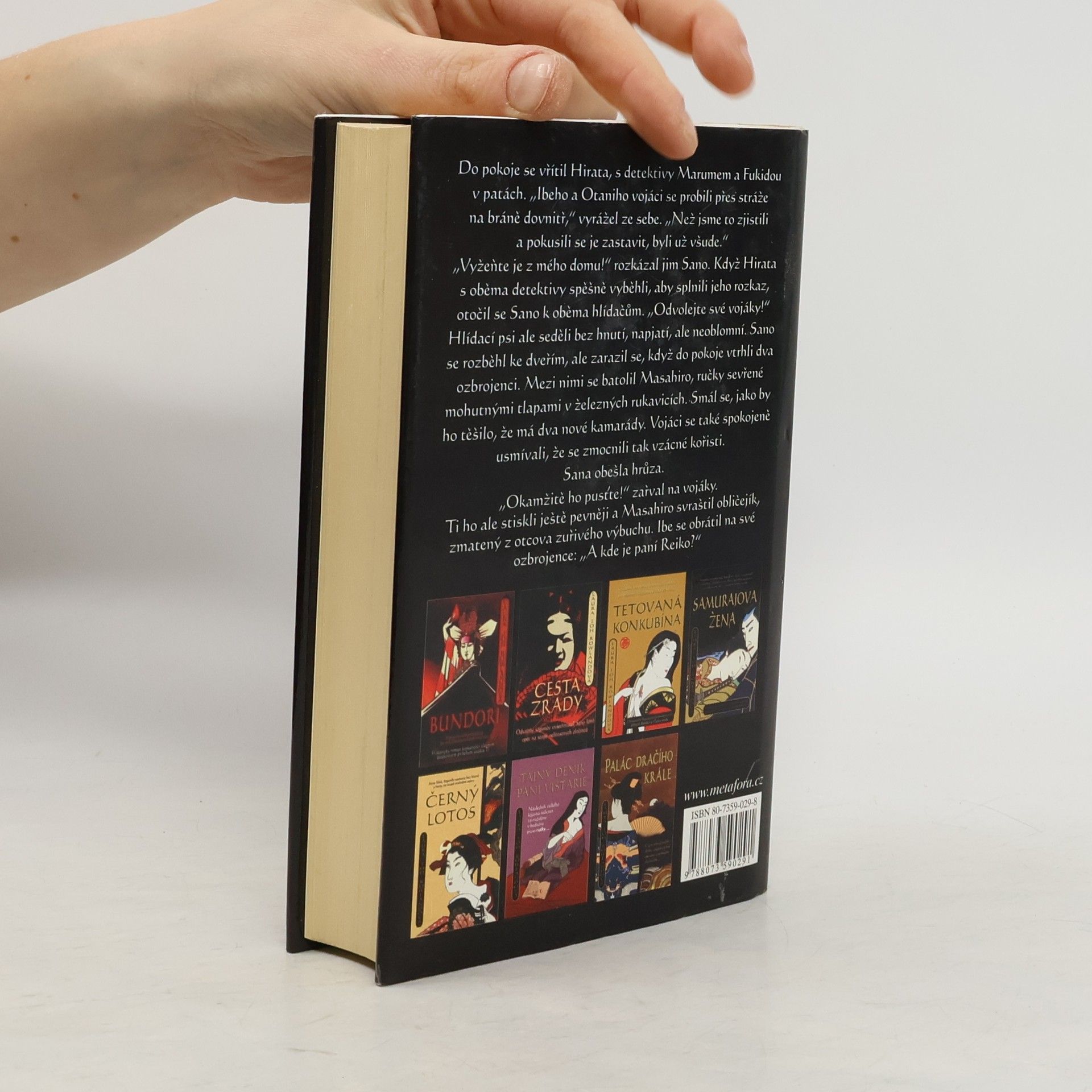 Na podzim roku 1694 panuje v hlavním městě Edu velmi napjatá atmosféra. Mír v zemi, trvající téměř celé století, je ohrožen. O převzetí moci usilují dva nesmiřitelní nepřátelé, komoří Janagisawa a Macudaira, bratranec nejistého a slabého šóguna. Oba vyzbrojují své armády a časté potyčky jejich bojovníků v ulicích hrozí přerůst v občanskou válku. Neklidnou situaci ještě více zdramatizuje úmrtí Makina, předsedy rady starších a důvěrného přítele komořího. Vlivný muž v obavách o svůj život přikázal svému komorníkovi, aby v případě jeho smrti předal vyšetřovateli dopis, v němž ho žádá o objasnění možné vraždy a usvědčení pachatele. Čestný a zásadový Sano Ičiró, který se za žádných okolností nechce zpronevěřit kodexu samurajské cti, se se souhlasem šóguna a s pomocí odvážné ženy Reiko a věrného hlavního dvořana pouští do nebezpečného pátrání, při němž musí čelit nátlaku představitelů obou znepřátelených klanů, usilujících získat ho za každou cenu na svou stranu. Devátý díl cyklu historických detektivních příběhů z Japonska 90. let 17. století.