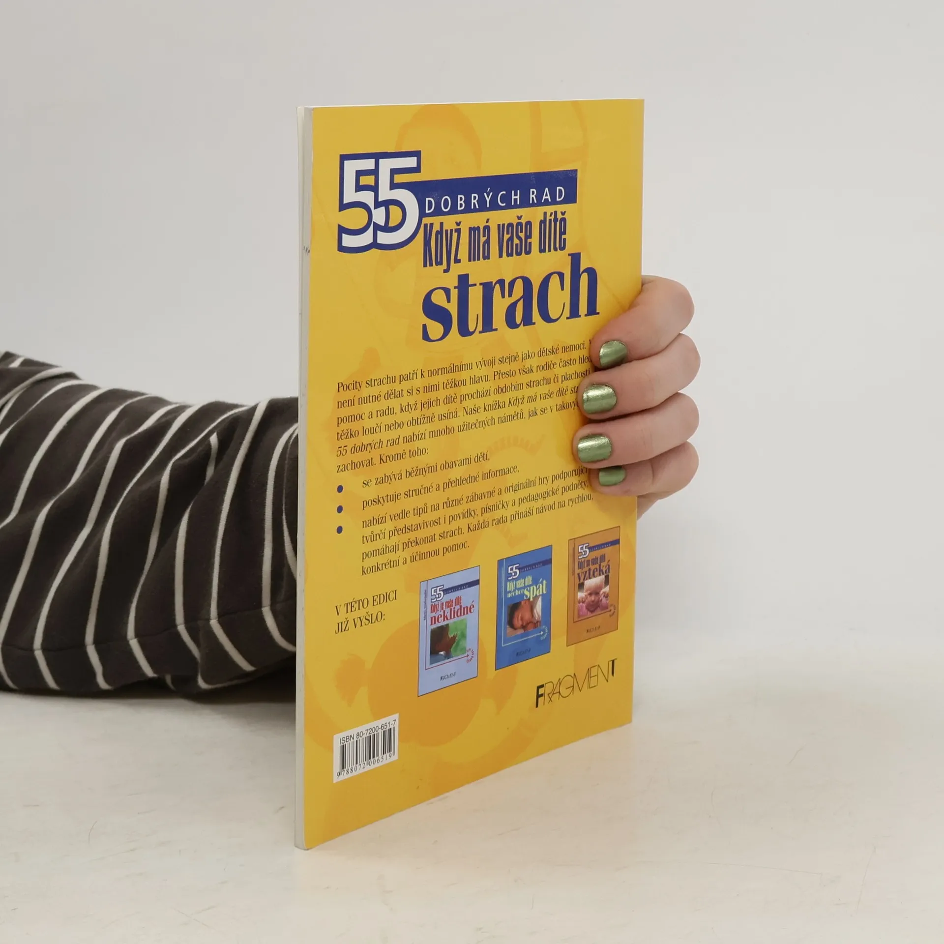 Pocity strachu patří k normálnímu vývoji dítěte stejně jako dětské nemoci. Většinou není nutné dělat si s nimi těžkou hlavu. Přesto však rodiče často hledají pomoc a radu, když jejich dítě prochází obdobím strachu či plachosti, když se těžko loučí nebo obtížně usíná. Naše knížka Když má vaše dítě strach z edice 55 dobrých rad nabízí mnoho užitečných námětů, jak se v takových situacích zachovat.